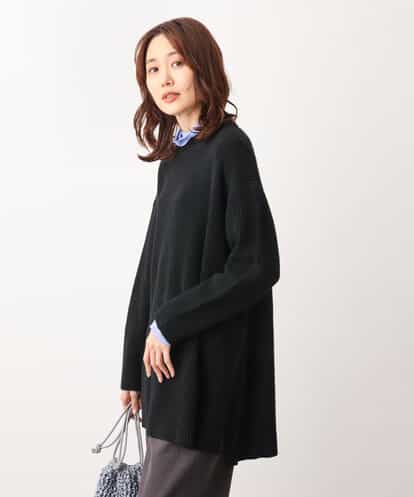 シンプルなパンツには一枚で映えるトップスを合わせて簡単に洒落見えを叶えたい。程よいラメ感が上品なニットは一枚でも、コートを羽織ってもポイントに。