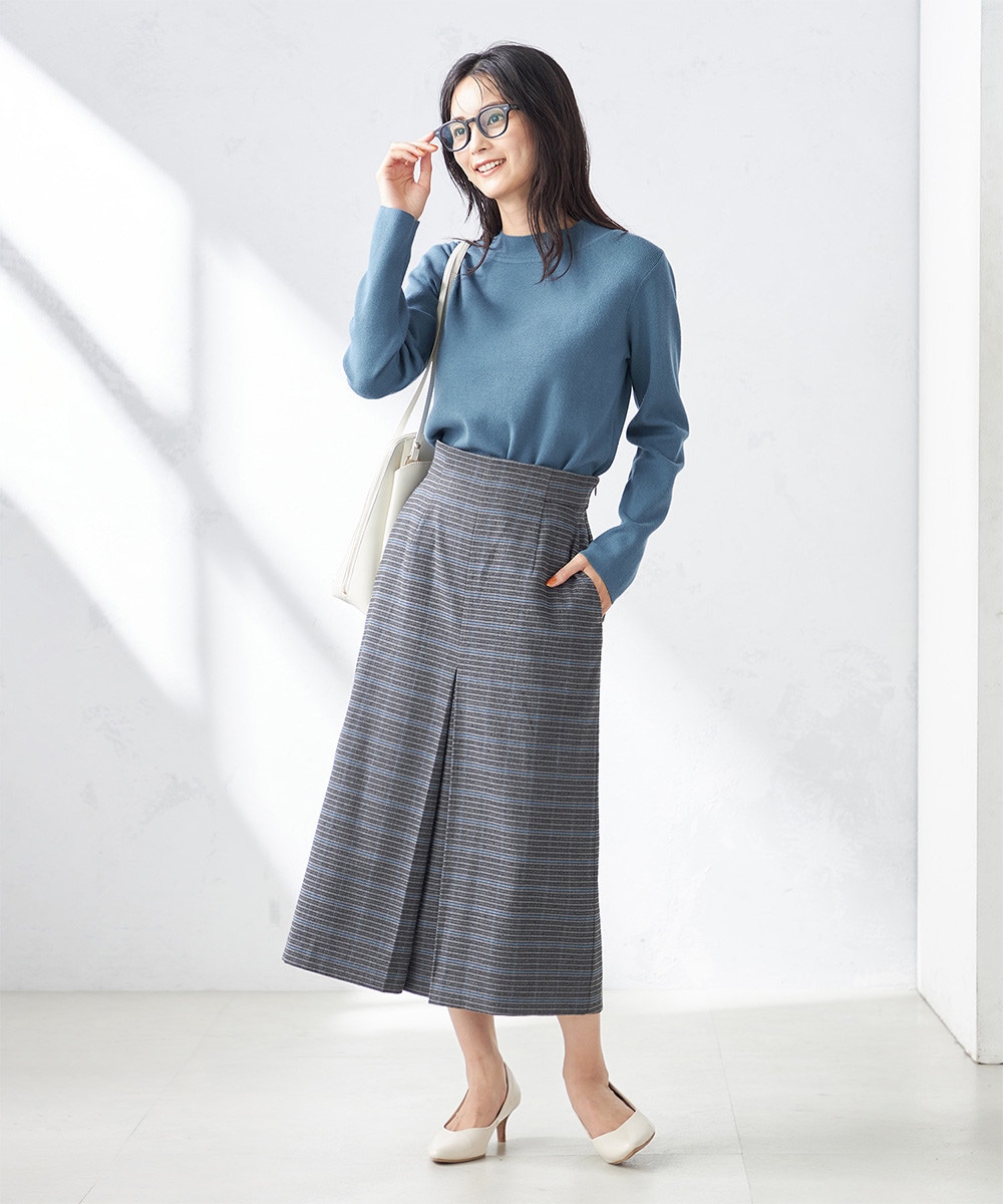 ギャザーハイネックデザインのブラウスもセットになっており、それぞれ単品使いもおすすめ。