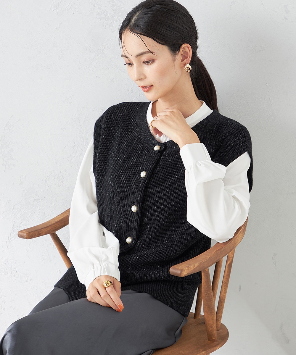 前後2wayで着られるベストは、繊細なラメ混ニット素材で一枚でも存在感抜群。
