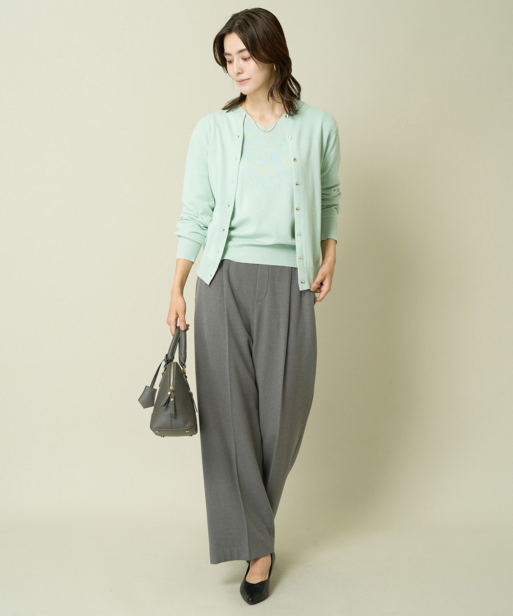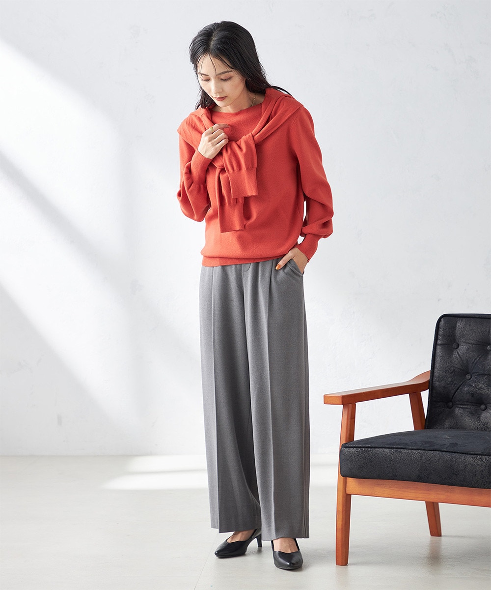 ベーシックシルエットニットなので、きれいめボトムと合わせて通勤スタイルにもぴったり。