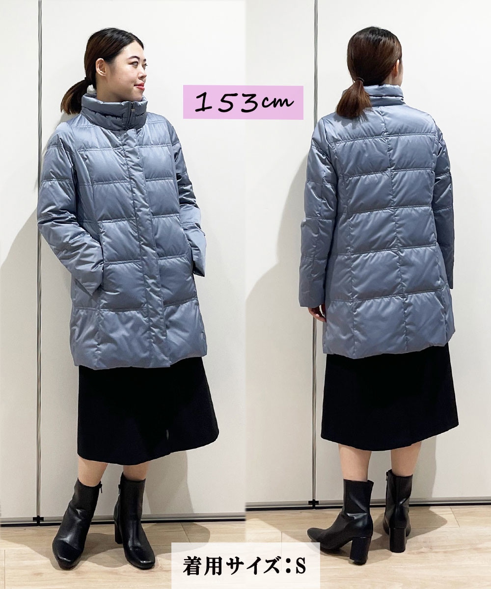ウエストシェイプのラインが女性らしく、太すぎず細すぎないキルトのラインが低身長の方にぴったりなラインで着膨れせずに着られます。