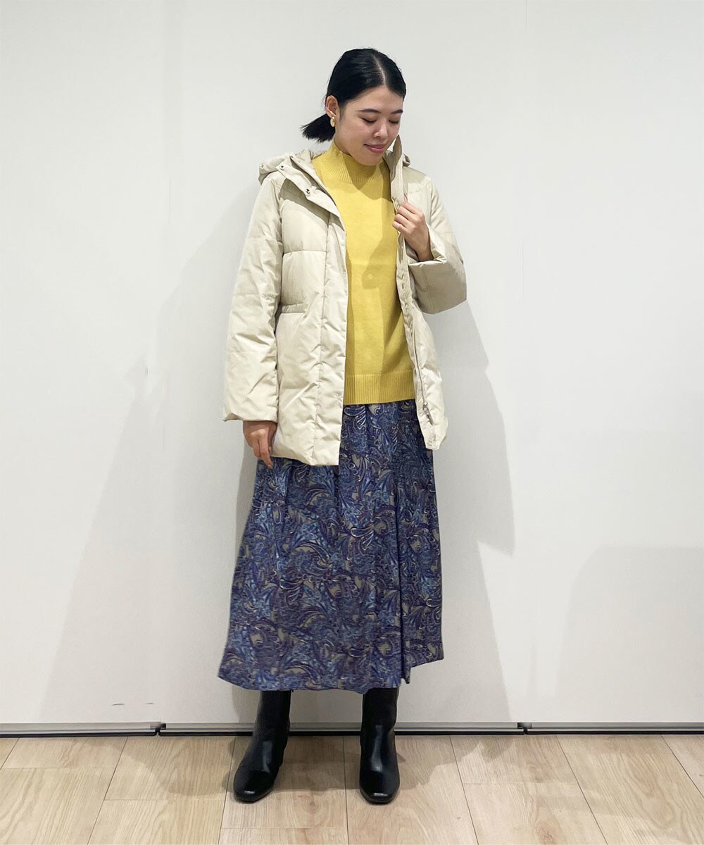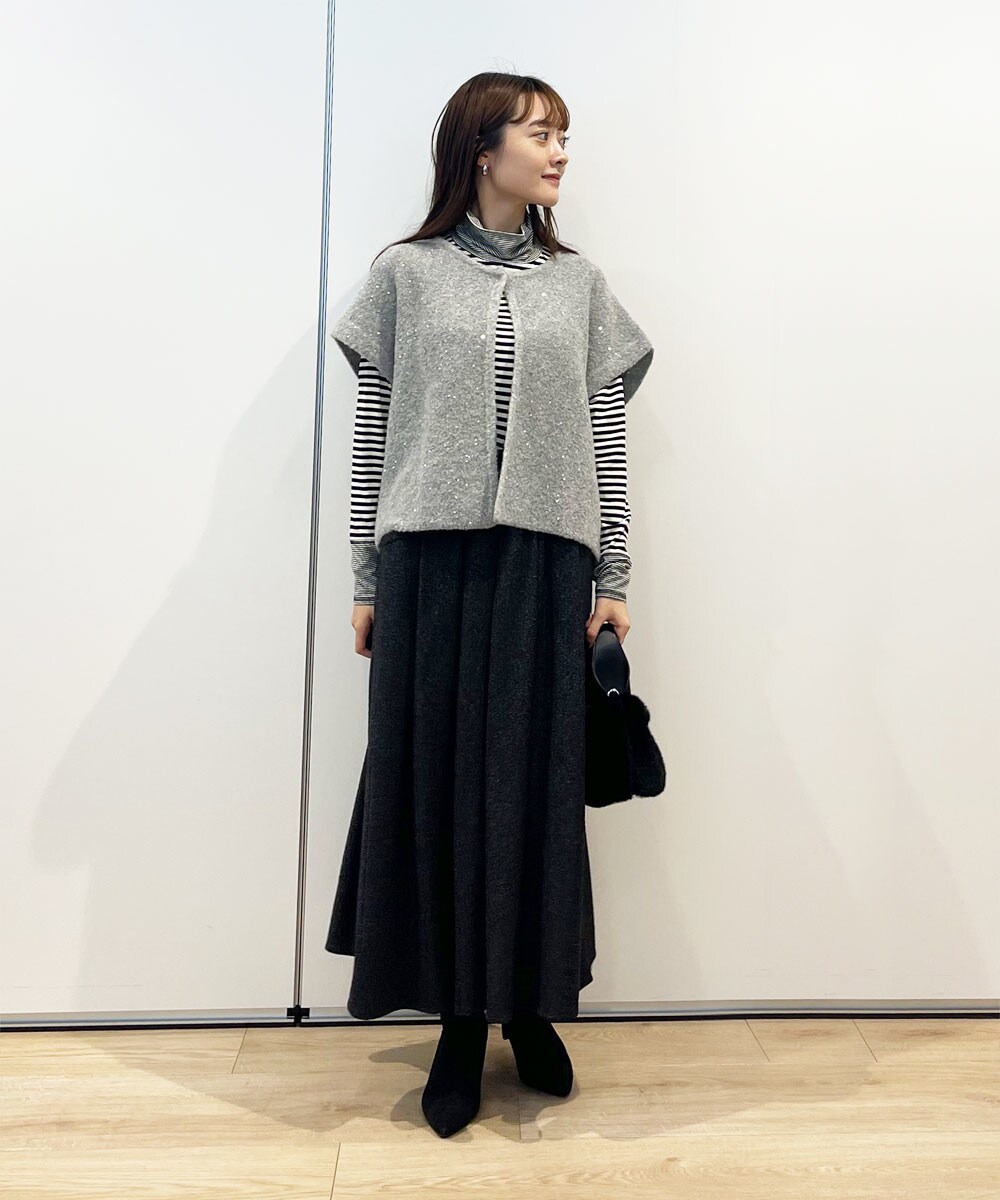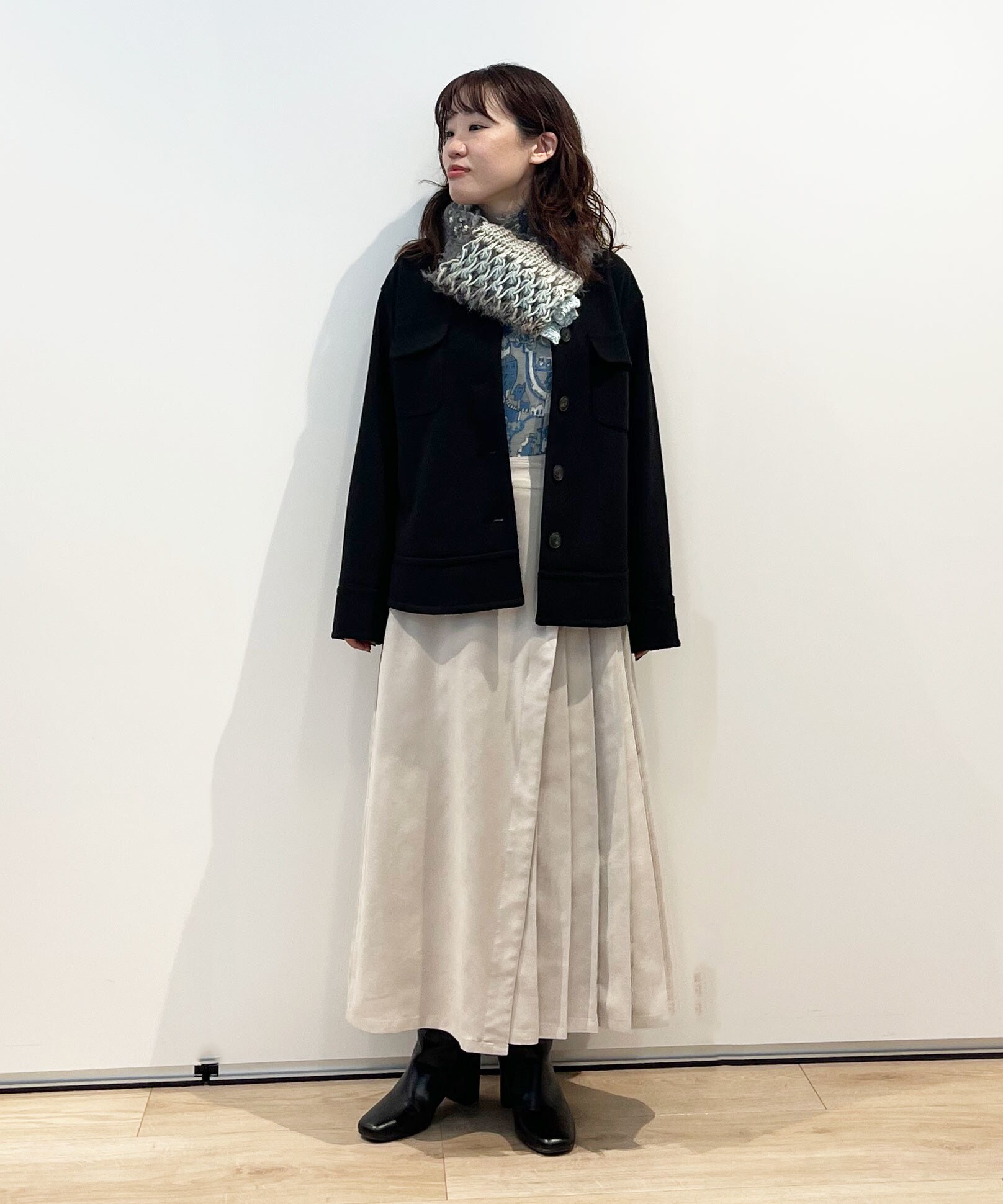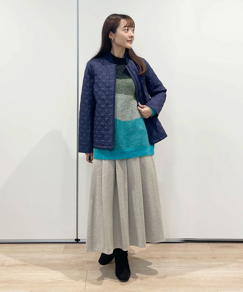 前後差のある丈なのでスカートも相性良く着ていただけますよ。