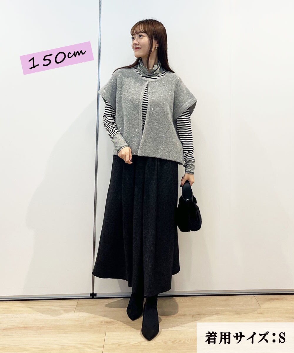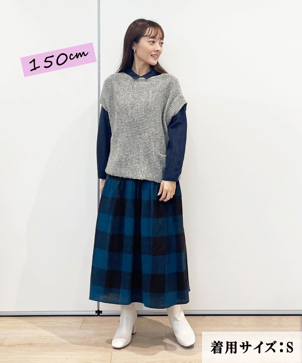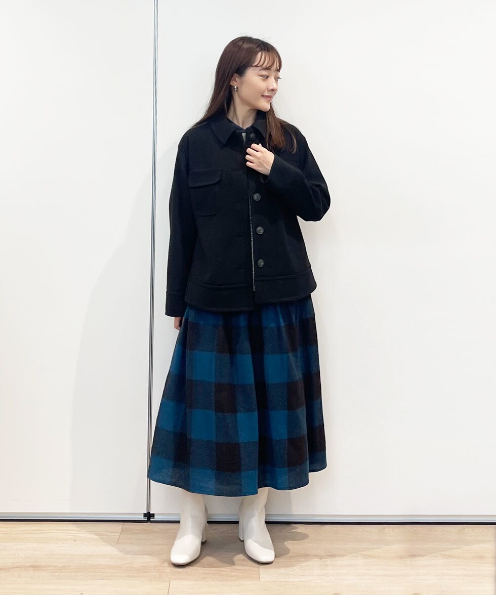 前後差のある丈なのでスカートも相性良く着ていただけますよ。