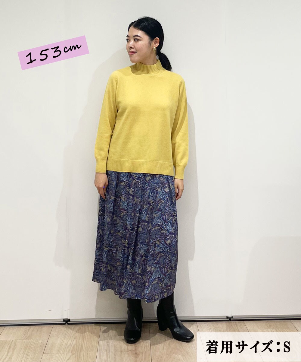 ニュアンスのある柔らかいイエローカラーが今年らしいニットです。