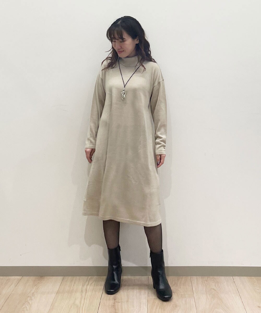 襟はゆったりとしたオフタートルで、ハイネックが苦手な私でも窮屈感なく着られました。