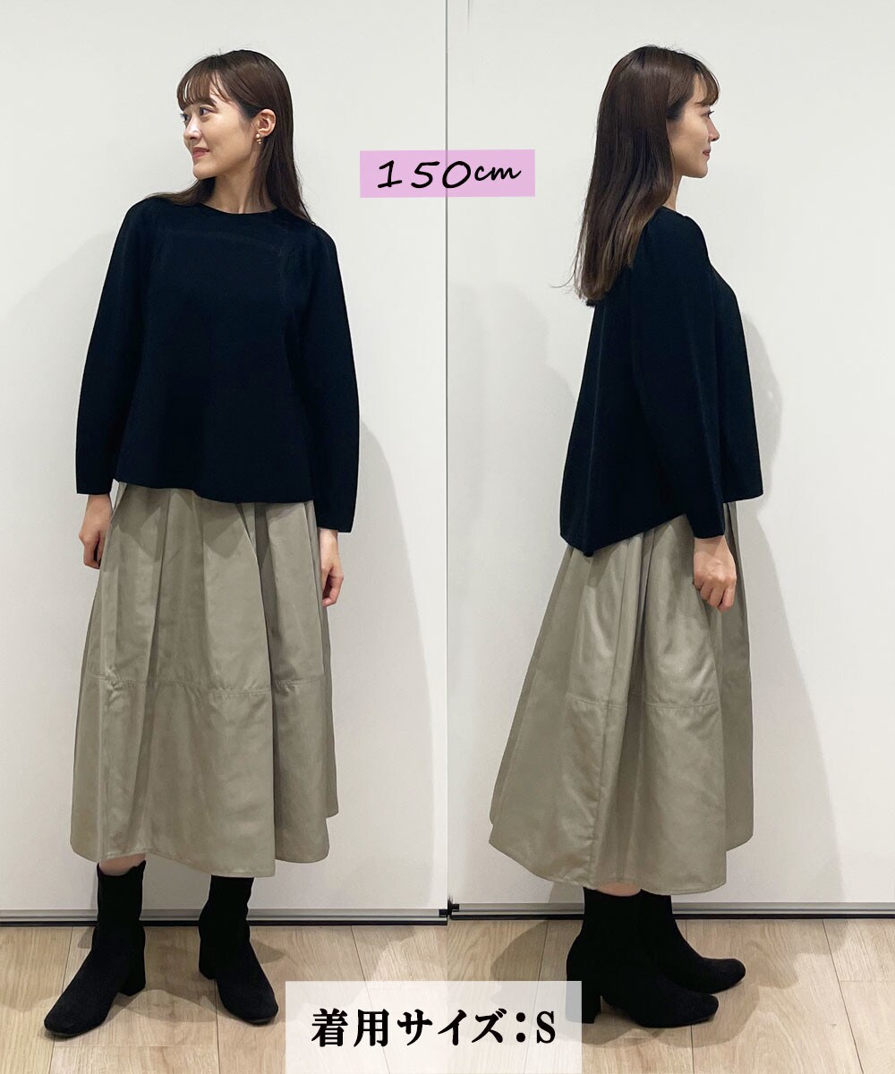 合わせたリアル風のスエードのデザインスカートは本格的で高級感のある風合いながら気負わずラフさのあるデザインなので、ニットにも合わせたくなるおすすめなアイテムです。