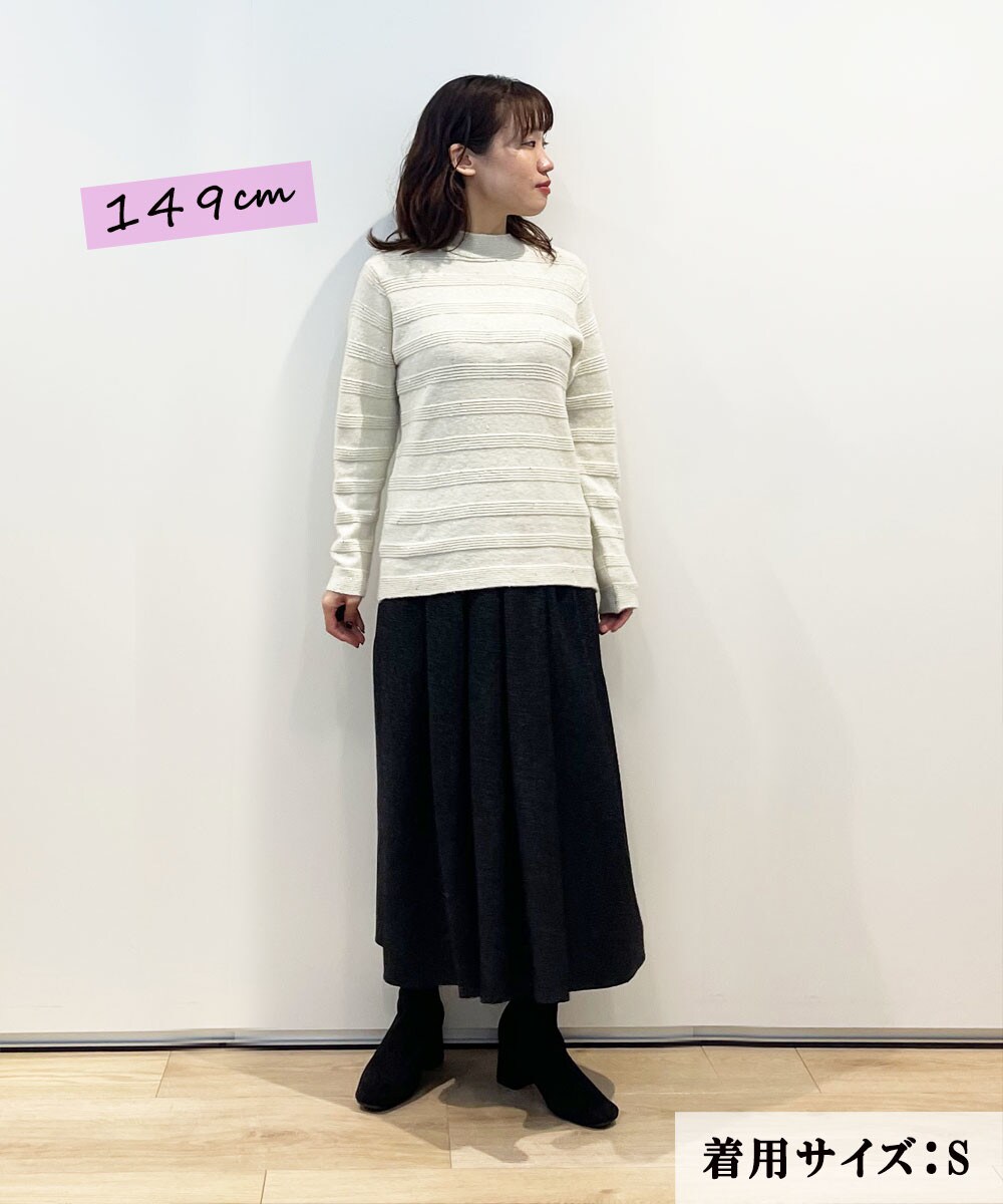 合わせるボトムス次第できれいめにもカジュアルにも着まわせるニットです。