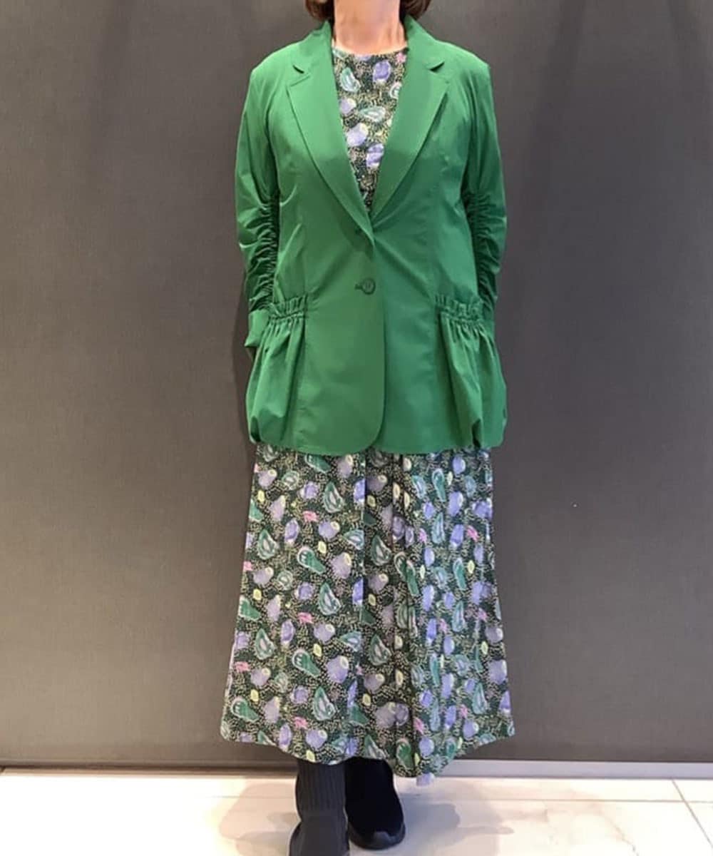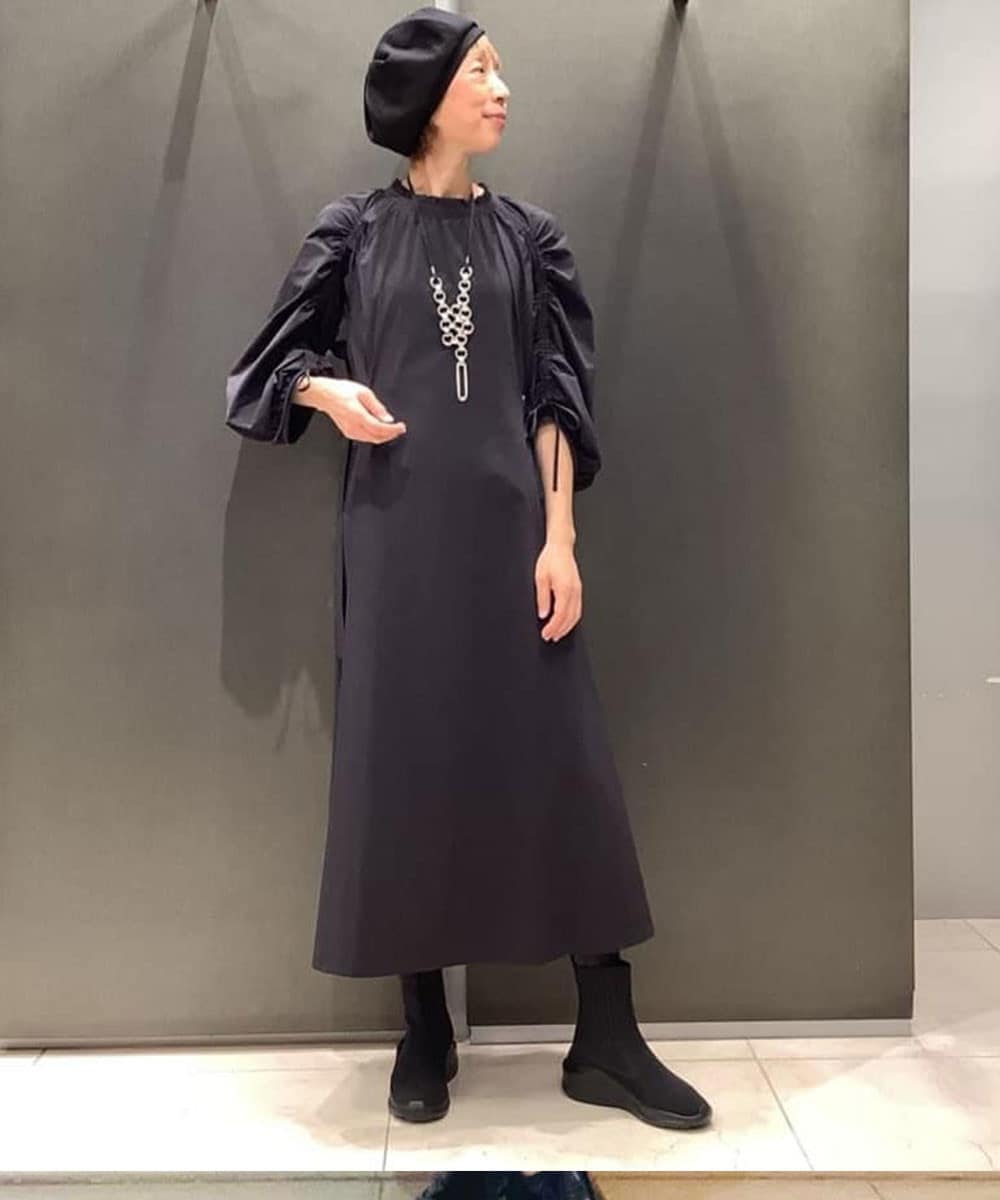 ギャザーやフリルのディテールが、着痩せ効果を引き出し、自信を持って着こなせるデザインです。