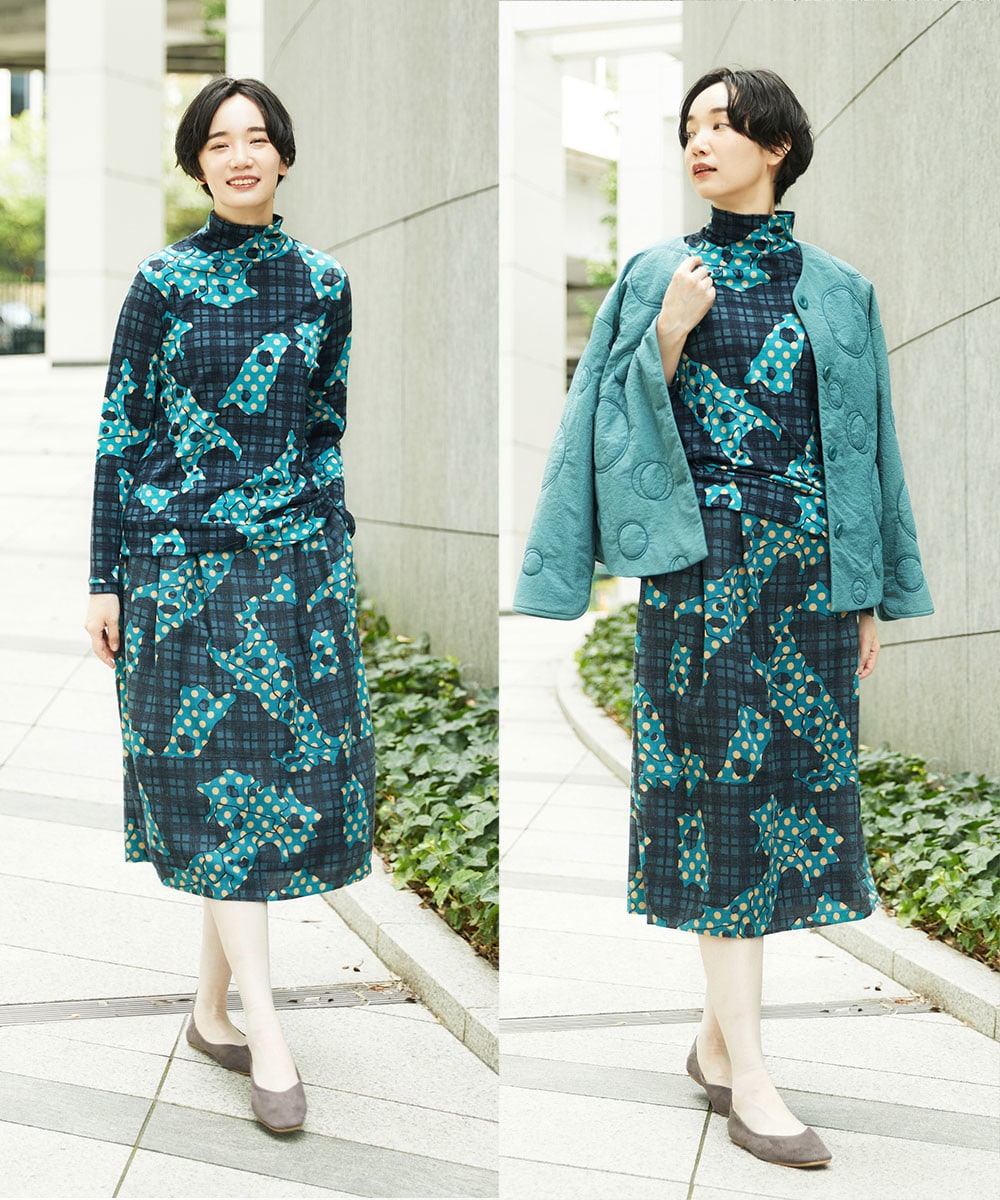 イタリア半島をモチーフにしたプリントから、イタリアンカラーの緑・赤・白をチェック柄で表現。
