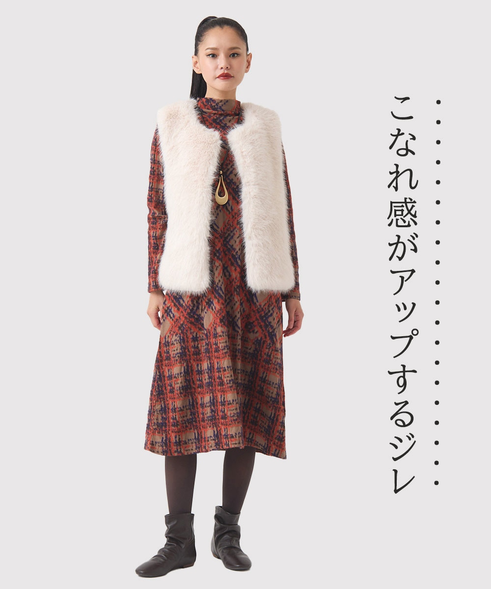 秋冬カラーをミックスし、大人かわいい配色チェック柄が目を惹く一枚。