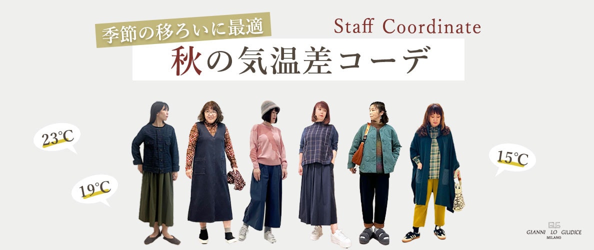 朝晩の気温差が気になる季節。汗ばむ日もあれば、肌寒く感じる日まで。1日を快適に過ごせるように、重ね着や素材で調整ができるコーディネートがマストです。気温差に上手に対応できるよう、おしゃれなスタッフの着こなしを「23℃・19℃・15℃」の気温別でご紹介します!