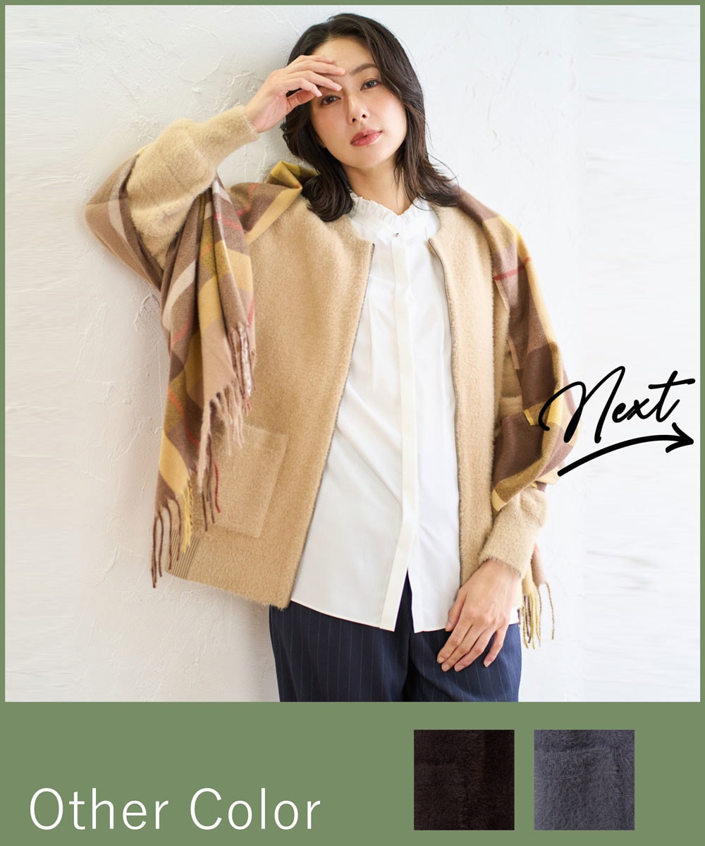 1.見た目も触り心地もふんわり滑らかなフェザーヤーンを使用した、上品なルックスのカーディガンです。