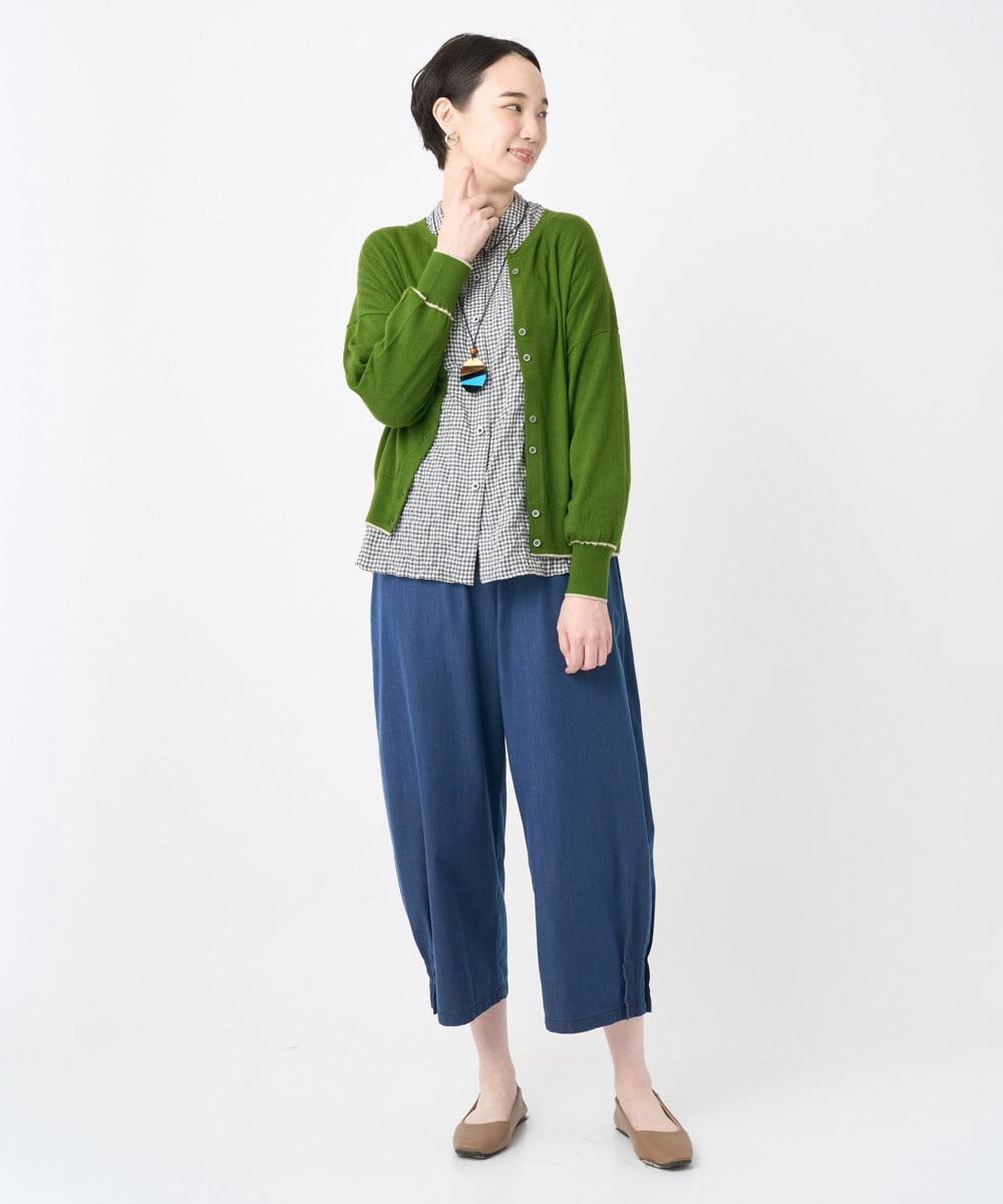 おしゃれ見え抜群のハイゲージ編みのニットカーディガン。ゆったりしたリラックス感のある着心地とタテ長効果でスッキリとした印象に。インナーにブラウスを合わせてきれい目に着るのもおすすめ。ボトムはデニムでカジュアルさをプラス。