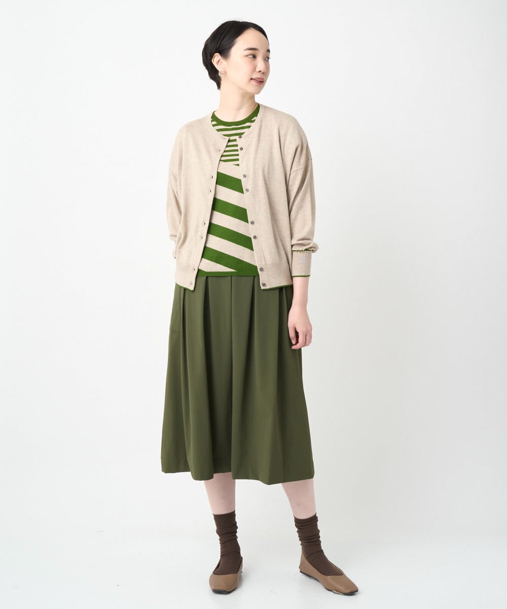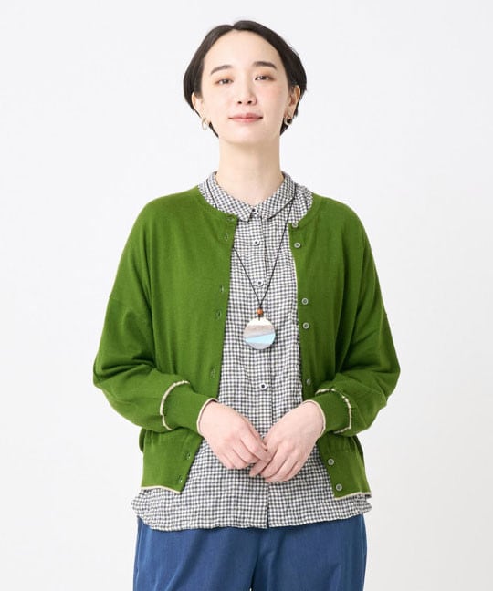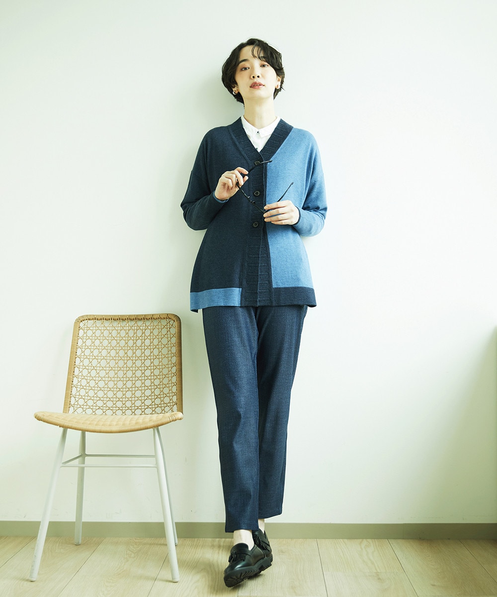 配色デザインが楽しいカーディガンは、大人の深みある3色展開でご用意。アクセントカラーにぴったりなグリーンは、落ち着きつつも明るく親しみやすい印象に。シンプルなデザインが上質さを引き立て、カジュアルなデニムスタイルも品のあるコーデが完成。