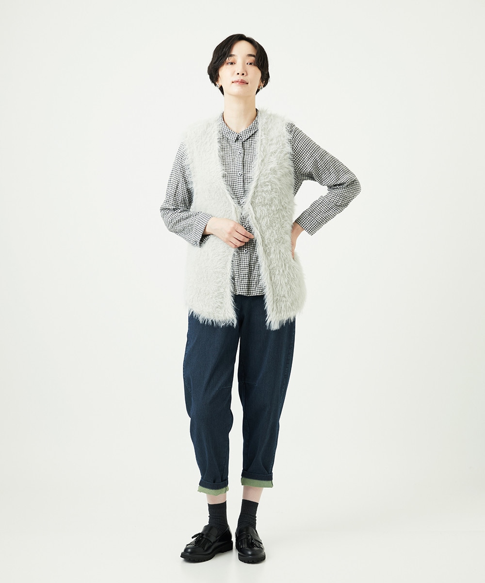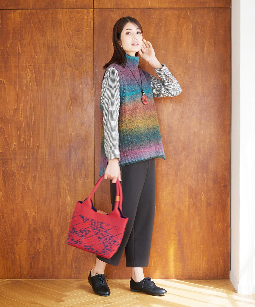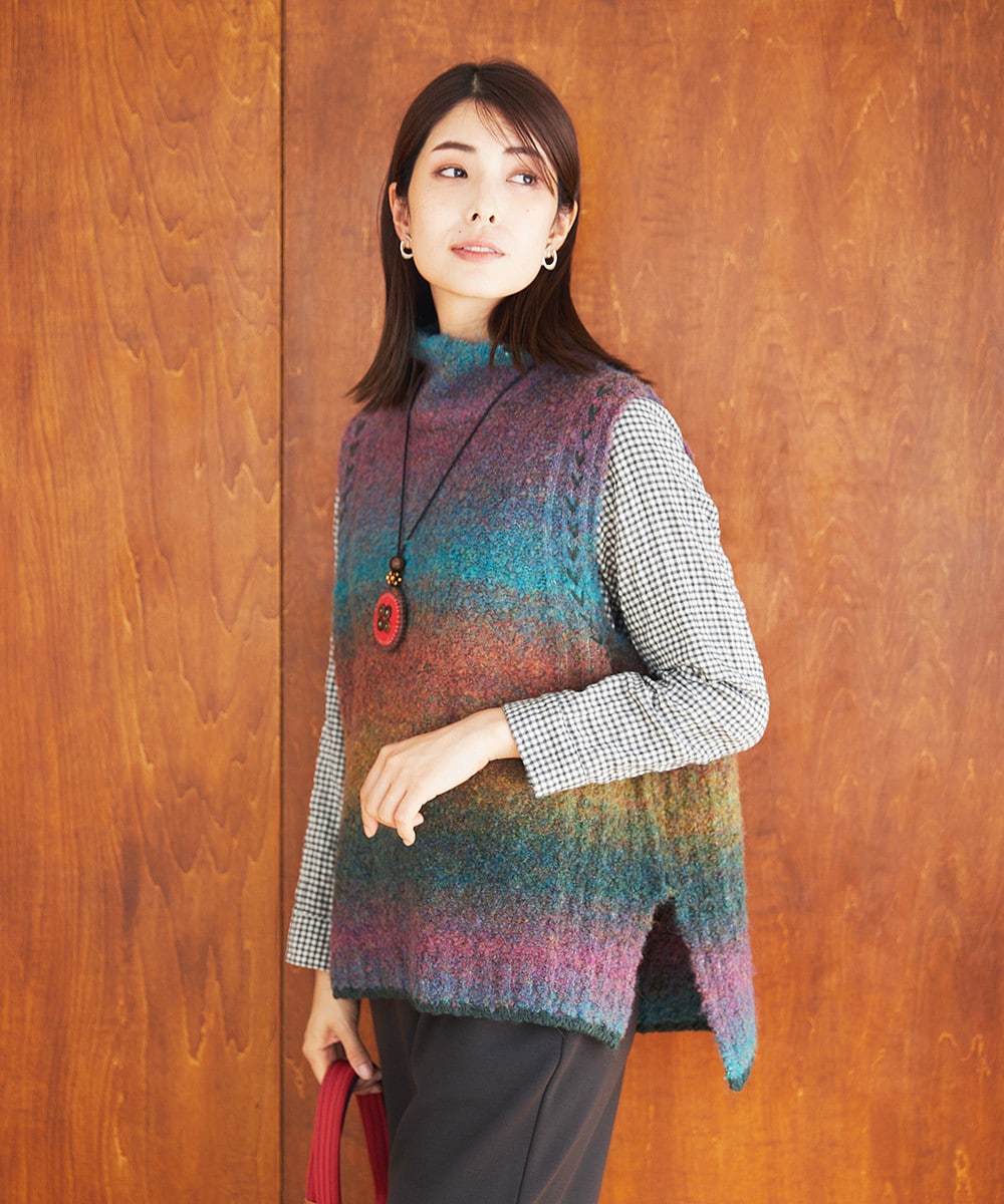 表情感のある素材感と楽しいカラーリングで、目を惹くニットベストは一気におしゃれをグレードアップしてくれるアイテム。シンプルな普段着にプラスするだけでこなれた印象に。インナーにブラウスやカットソーを合わせてレイヤードスタイルを楽しんで。小物など、カラーアイテムとも好相性。