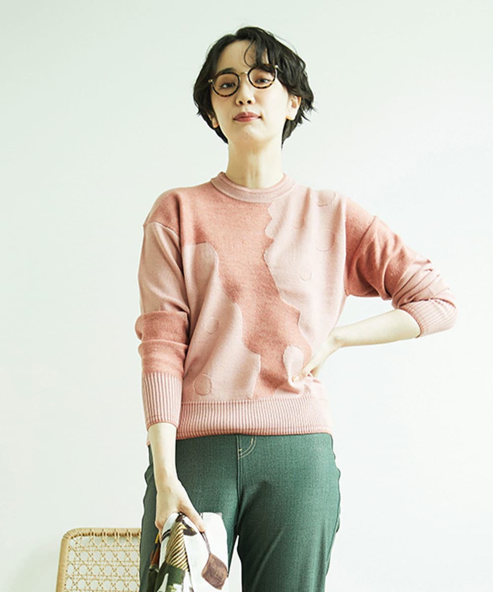絶妙な色味で上品さを感じる甘すぎない大人のピンクカラー。ほどよく身体に沿うサイズ感もマッチし、上質ながらカジュアルに楽しめるニット。ボトムも幅広いアイテムに馴染むので、意外と取り入れやすいのもポイント。1つは持っておきたいカラーアイテム。