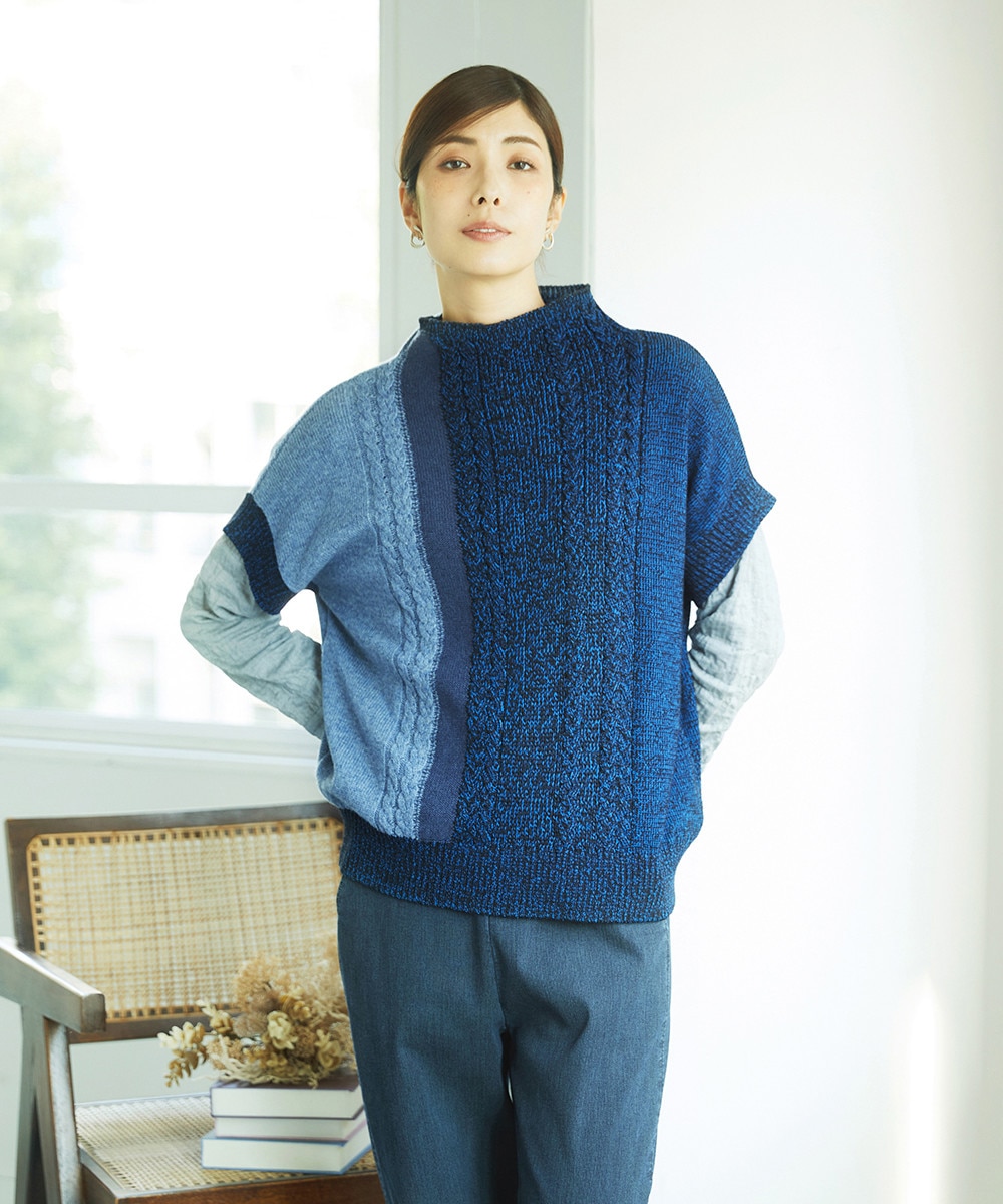 杢糸を使用することで奥行きのある表情がポイントのニットベスト。上質感を感じられつつつも、カジュアルに使用できる取り入れやすいデザイン。ブルー系ならデニムなどの同系色でまとめるコーデもGOOD。シンプルになりすぎず、程よく存在感が感じられるアイテム。