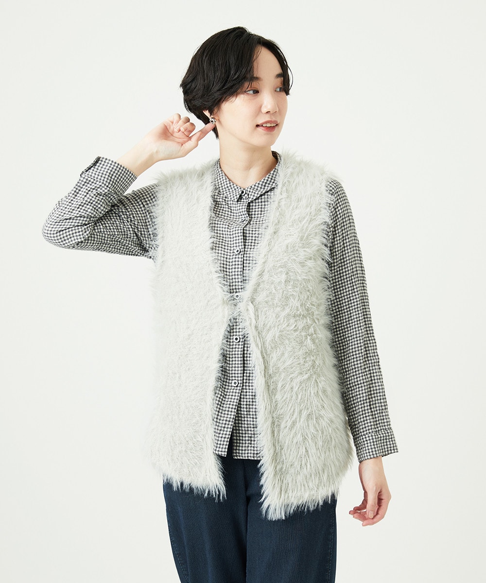 ソフトで肌触りがなめらかな、肌触りが気持ちのいいニットベスト。秋のレイヤードスタイルにはもちろん、コートインしてもごわつかいボリューム感なので冬の間も活躍。羽織るだけでフェミニンさがプラスされ、トレンド感ある印象に。