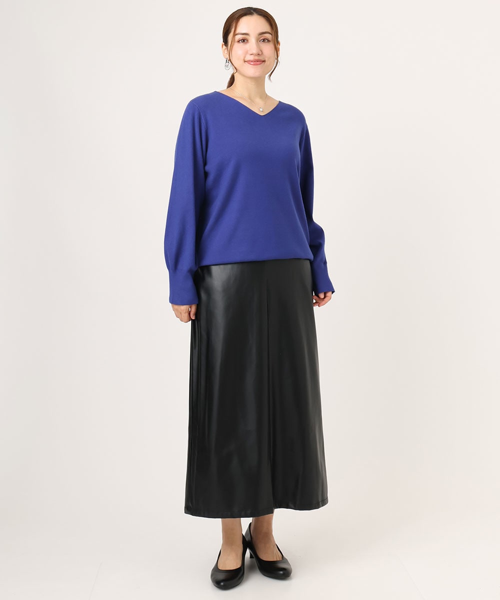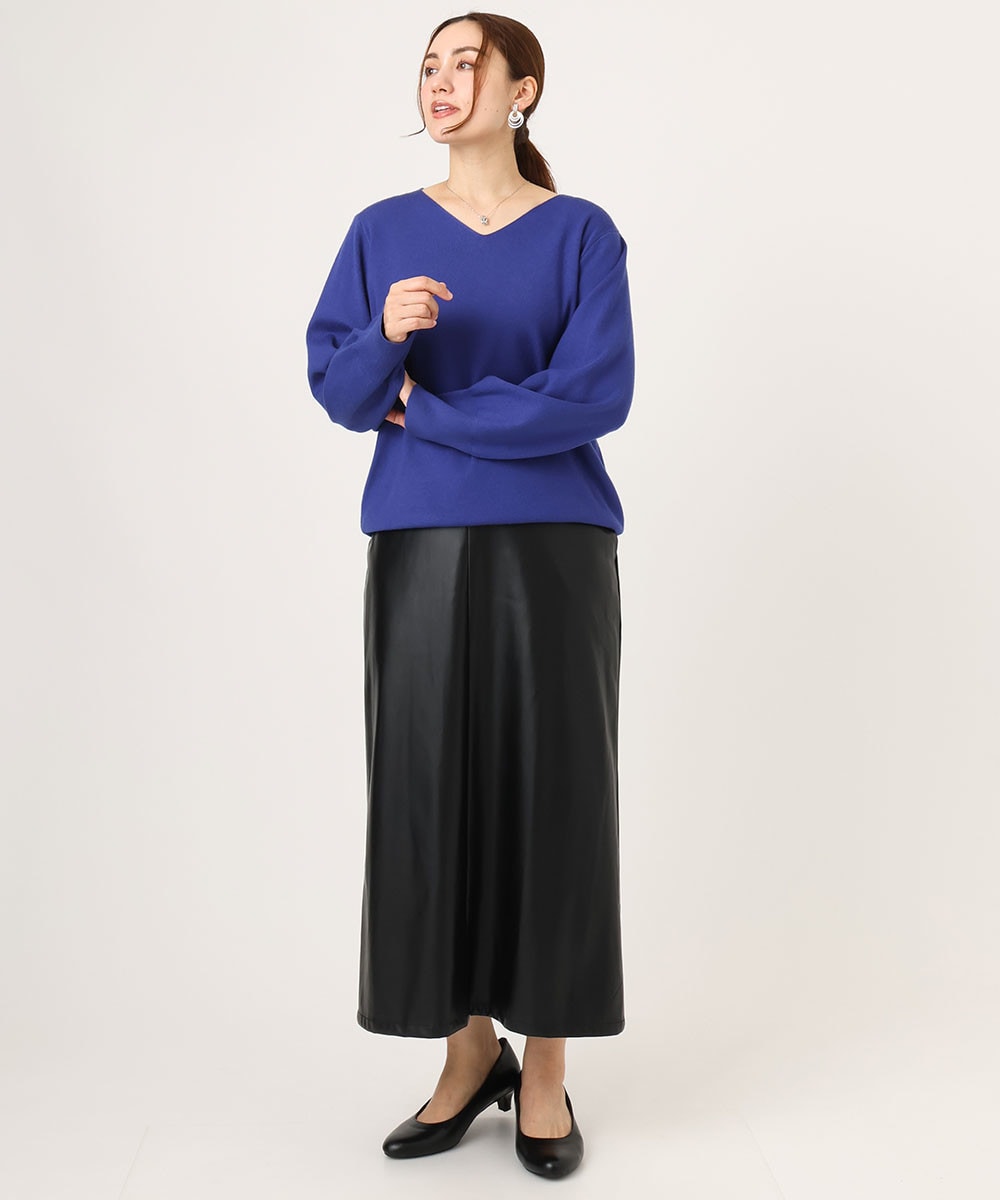 シルエットのきれいなスカートときれい色のニットできちんと感を。