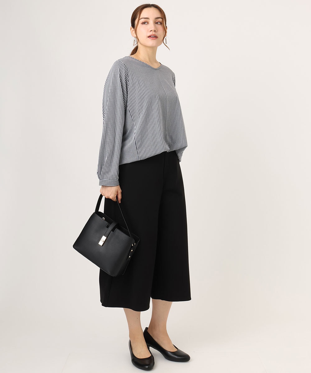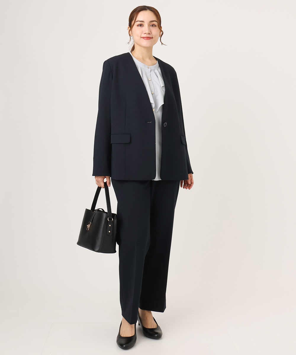シルエット違いのパンツでもきちんと感をキープしてくれるのがうれしいポイント。