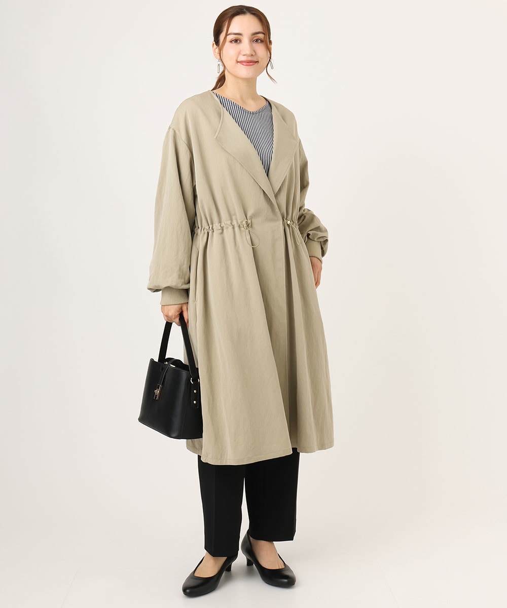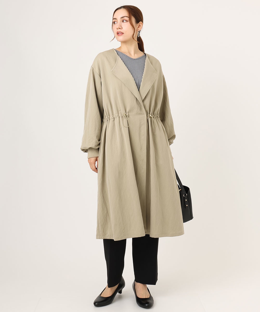 落ち感があり程よくフェミニンなライトロングコート。