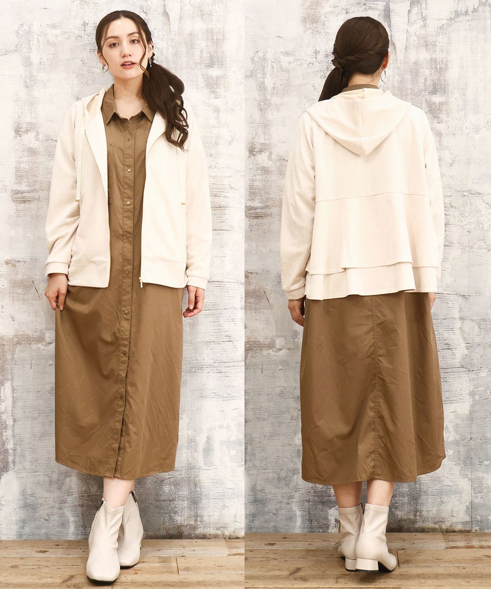 腰回りまでカバーできる着丈で、安心して着られるのもうれしいポイント。