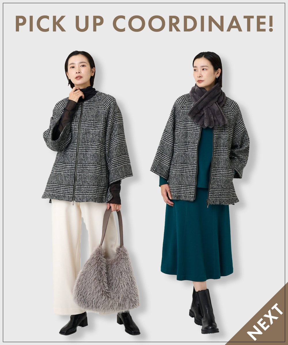 シーズンムード高まる暖かみのあるチェック柄が秋冬らしく、着映えも叶えてくれます。