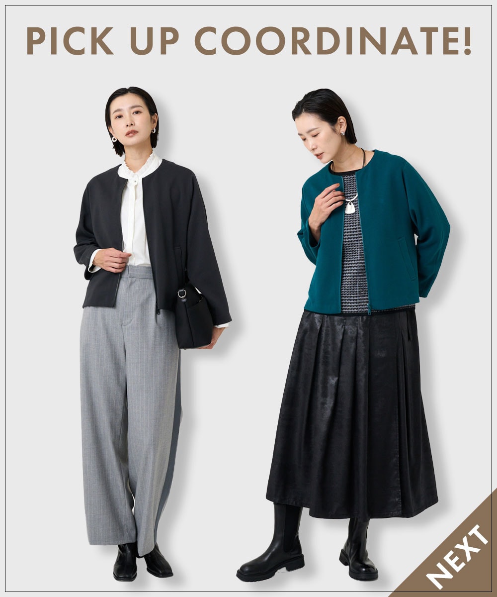 コンパクトなミドル丈なので半端丈のボトムともバランス良く合わせていただけます。