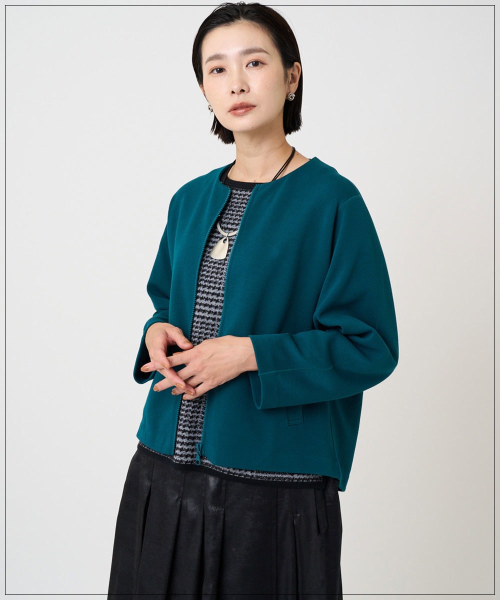 PICK UP OUTER:ノーカラージャージージップ羽織