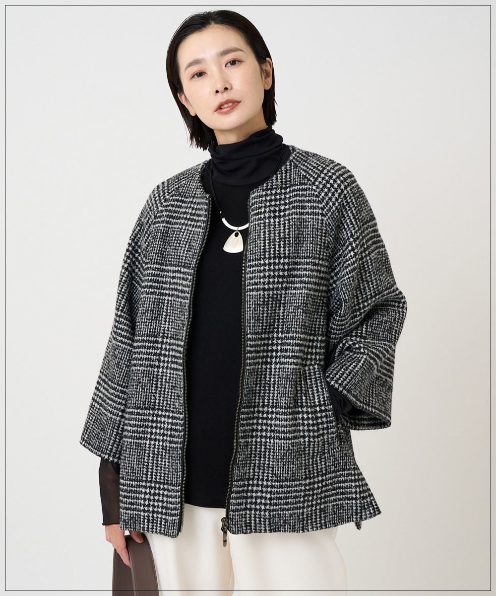 PICK UP OUTER:グレンチェックポンチョジャケット