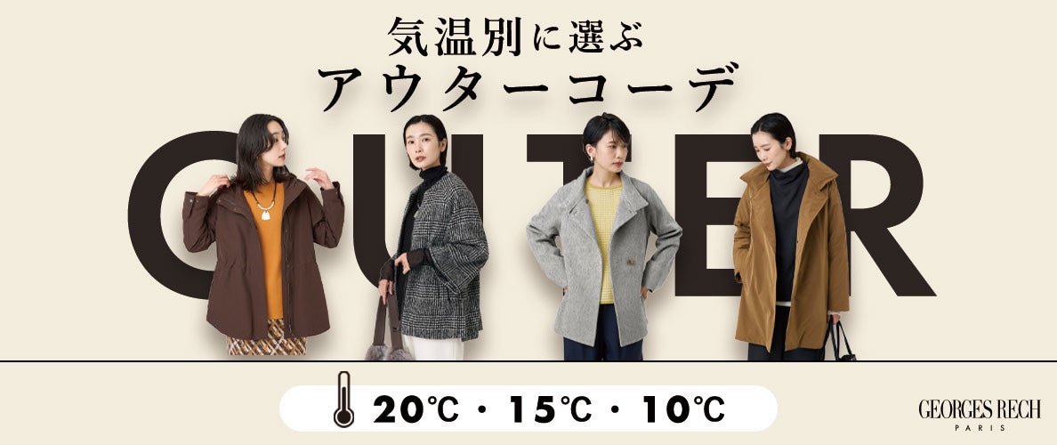 季節の変わり目に多い20℃~15℃、冬の寒い10℃前後まで、気温別にアウターの着こなしをご紹介いたします。
