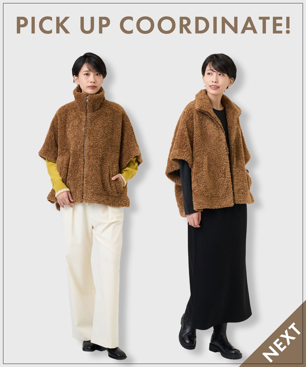 存在感のある柄とポンチョデザインを活かして、アウターを主役にしたコーデがおすすめ。