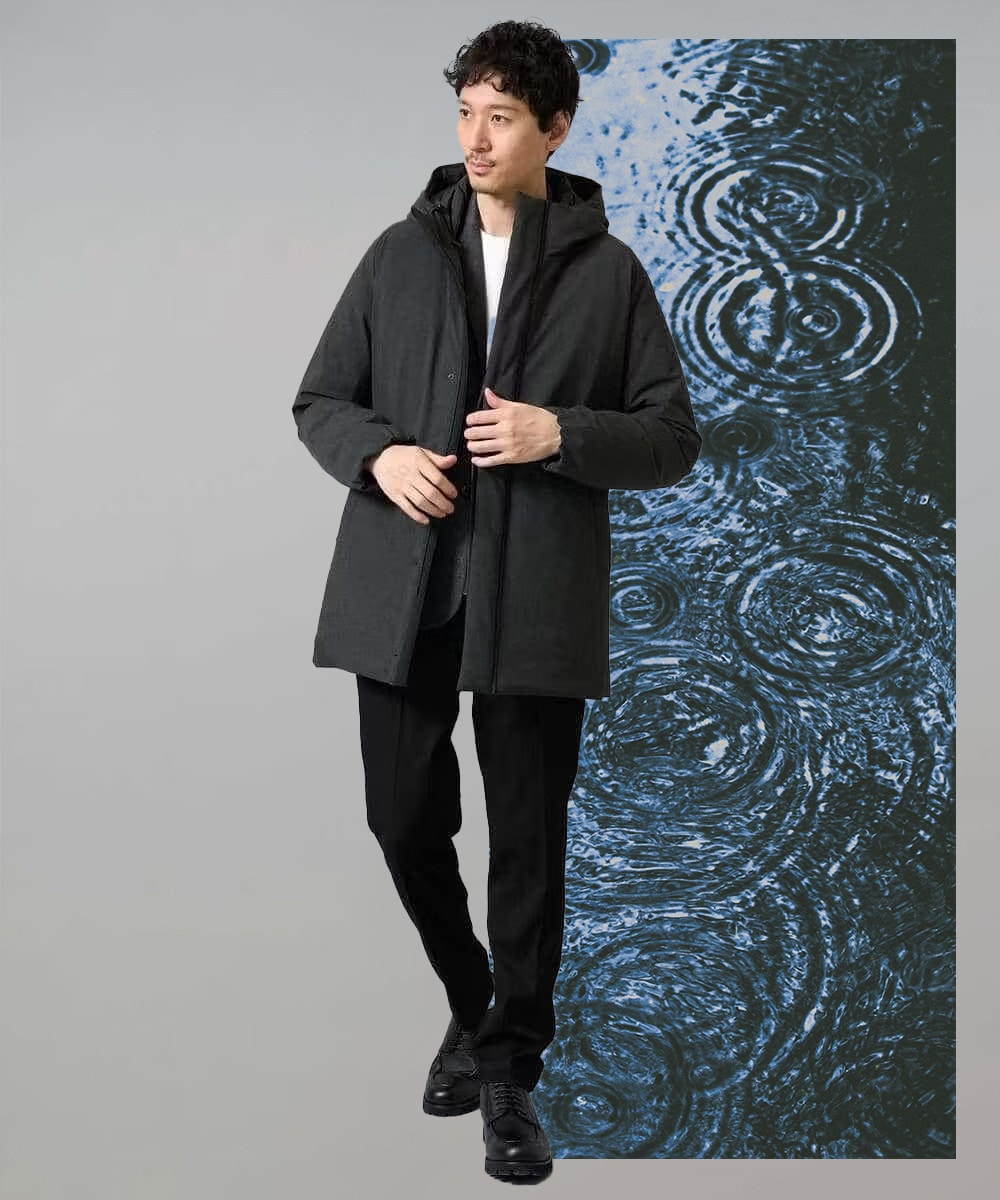 冬の通勤シーンにマストな撥水・防風性もあり、天候対応もバッチリ!