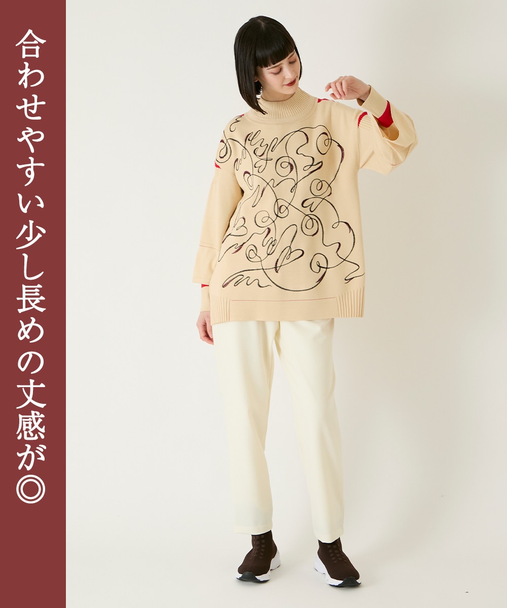 【大きいサイズ】アートロゴ総柄チュニックカットソー /洗える