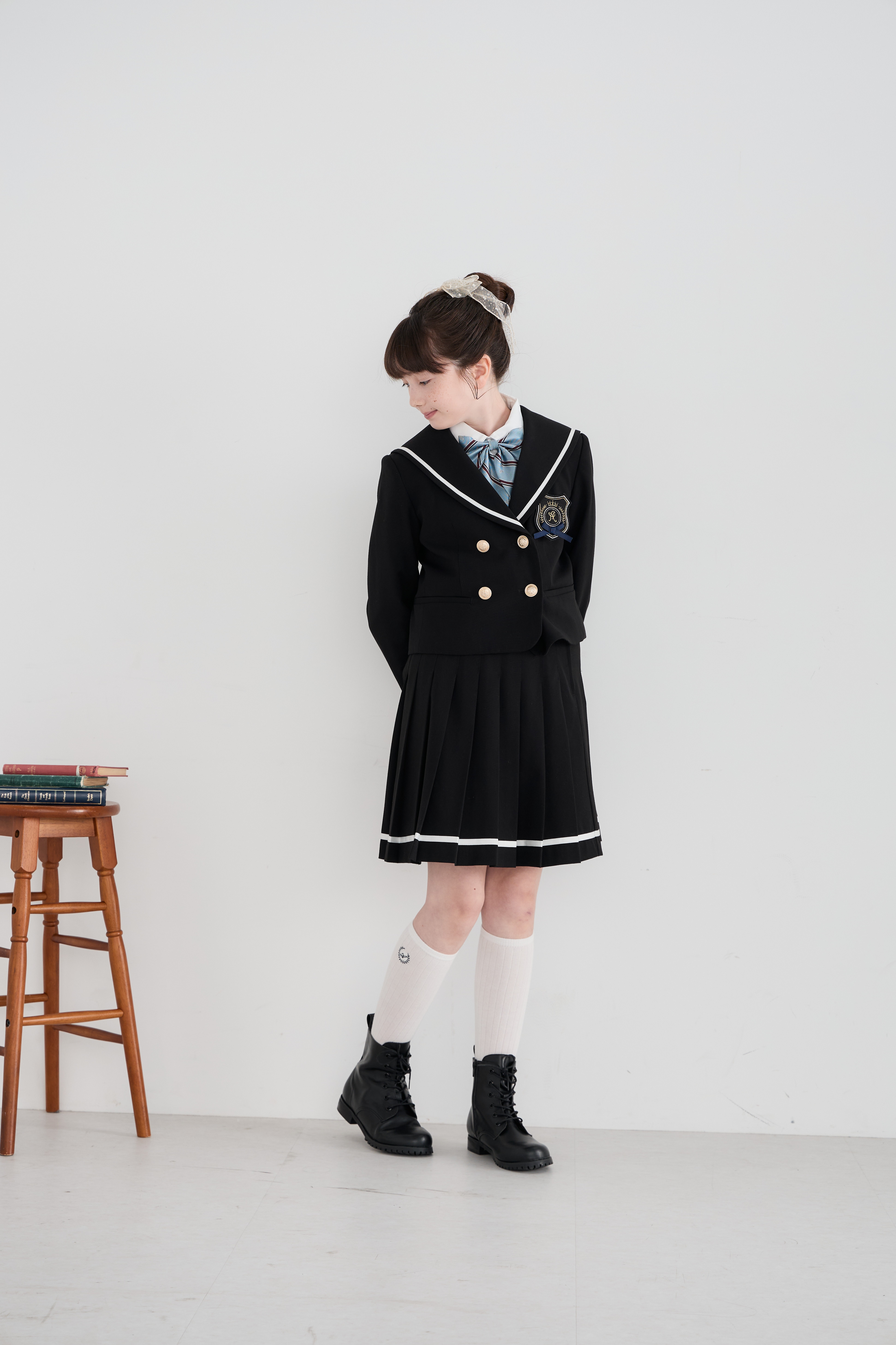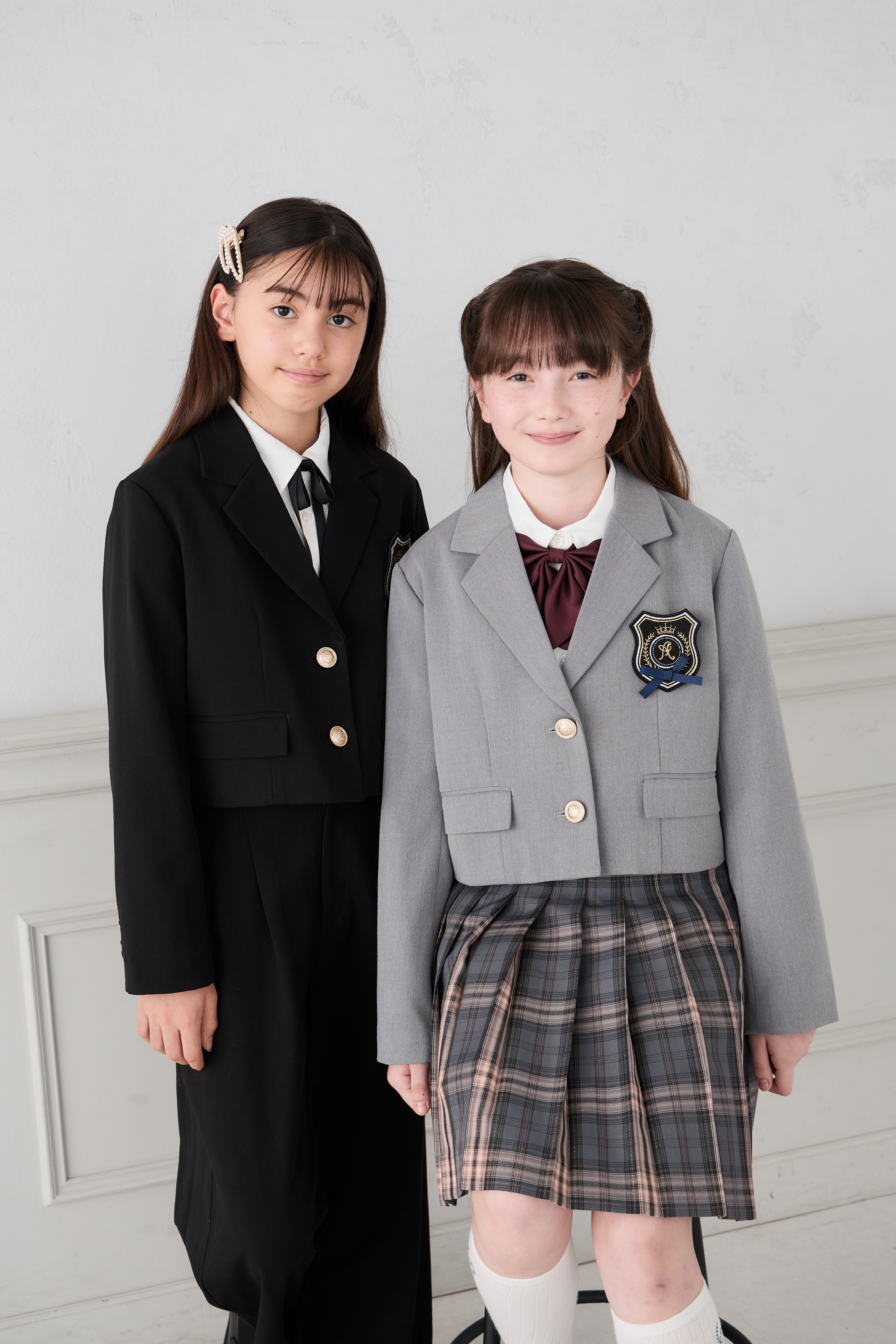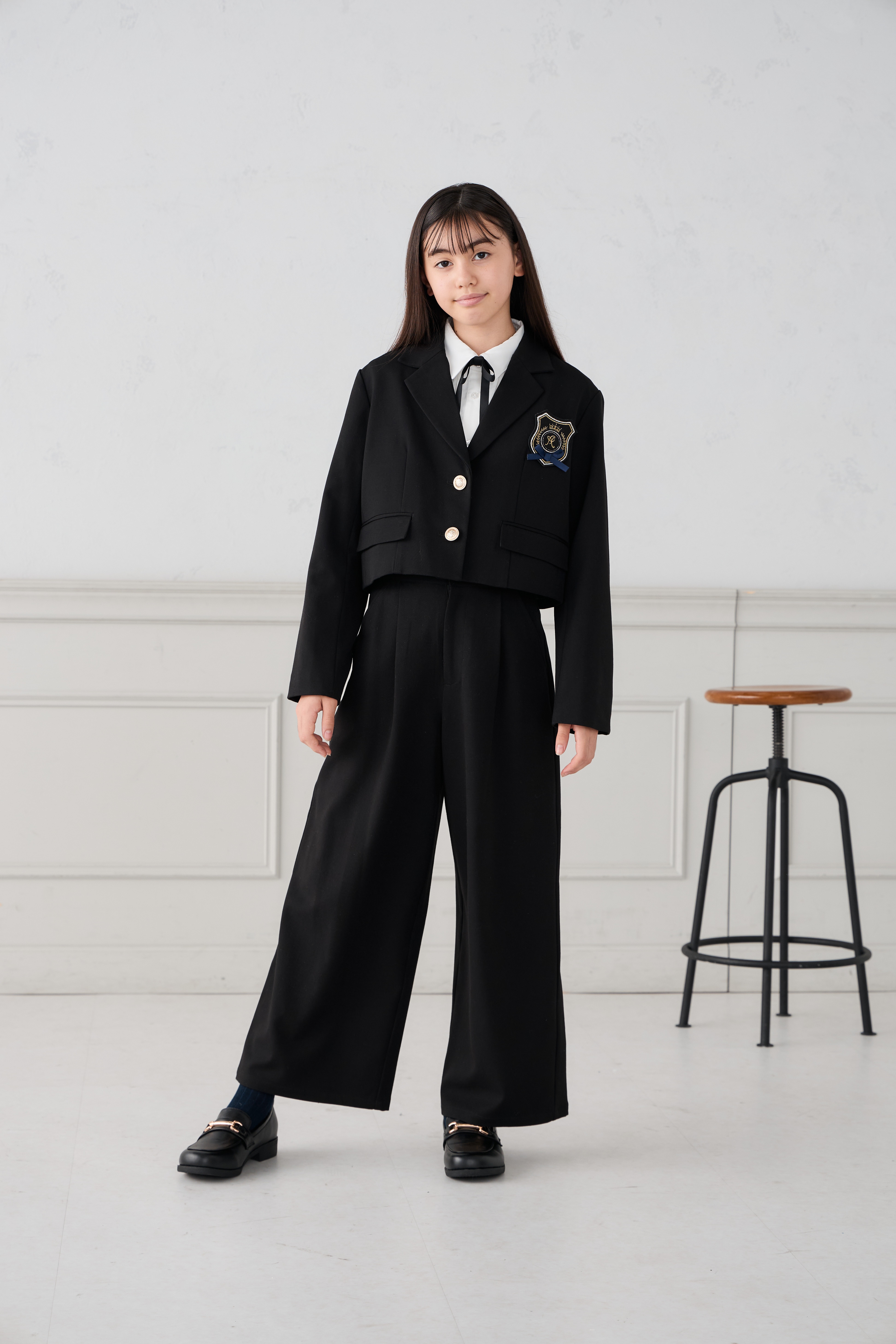 配色ラインとゴールドボタンが上品なアクセントになり、卒業式などのセレモニーにもぴったり!