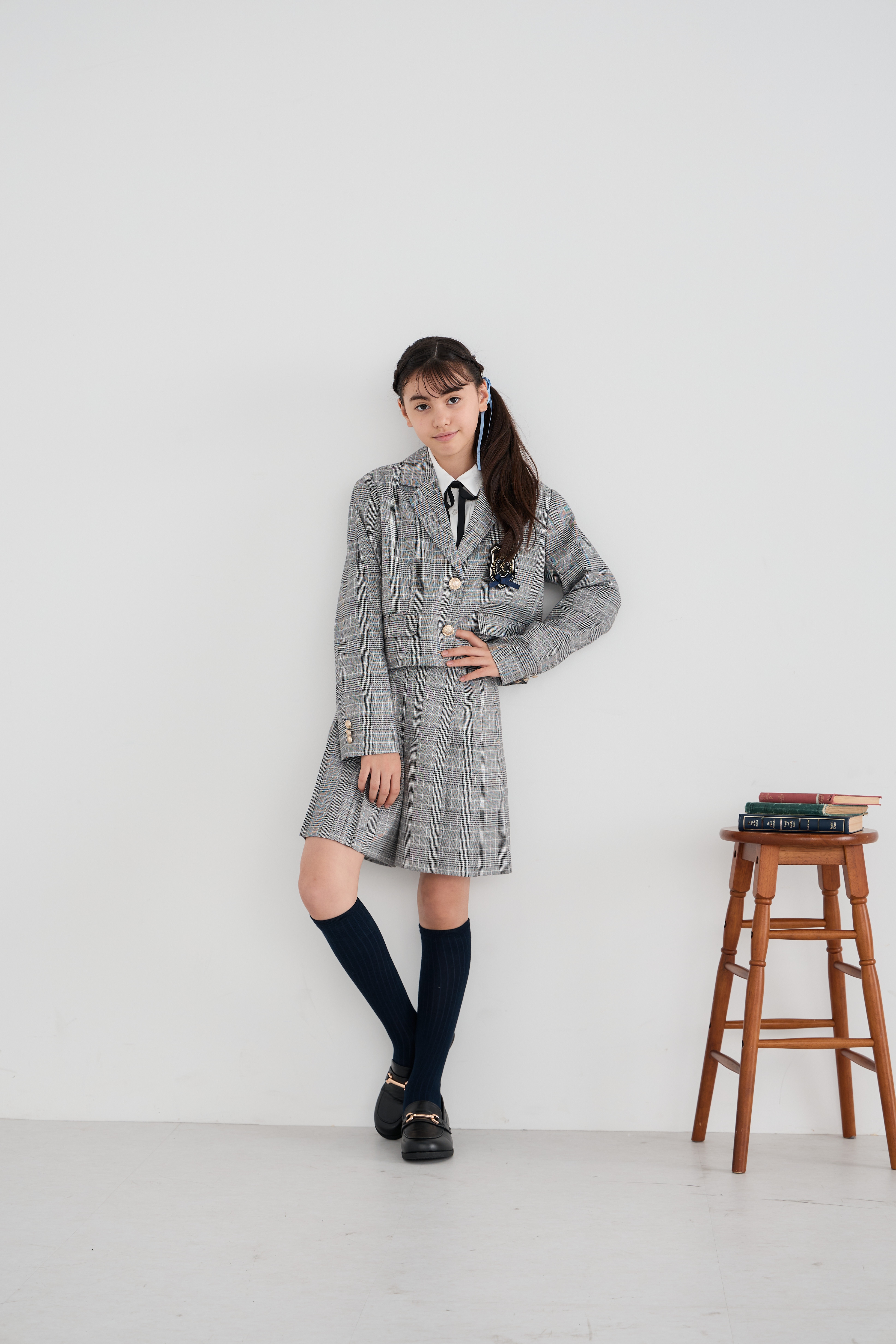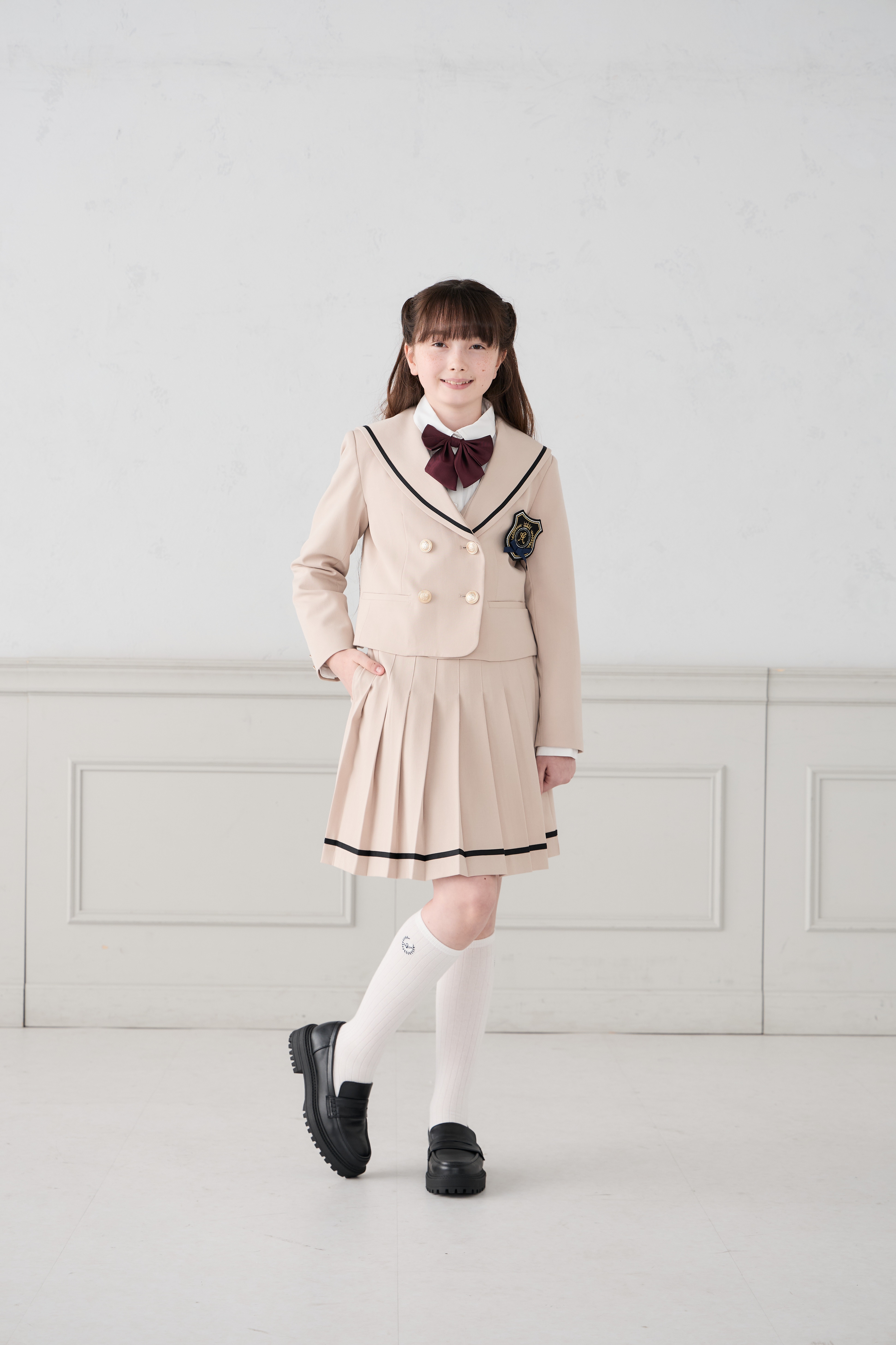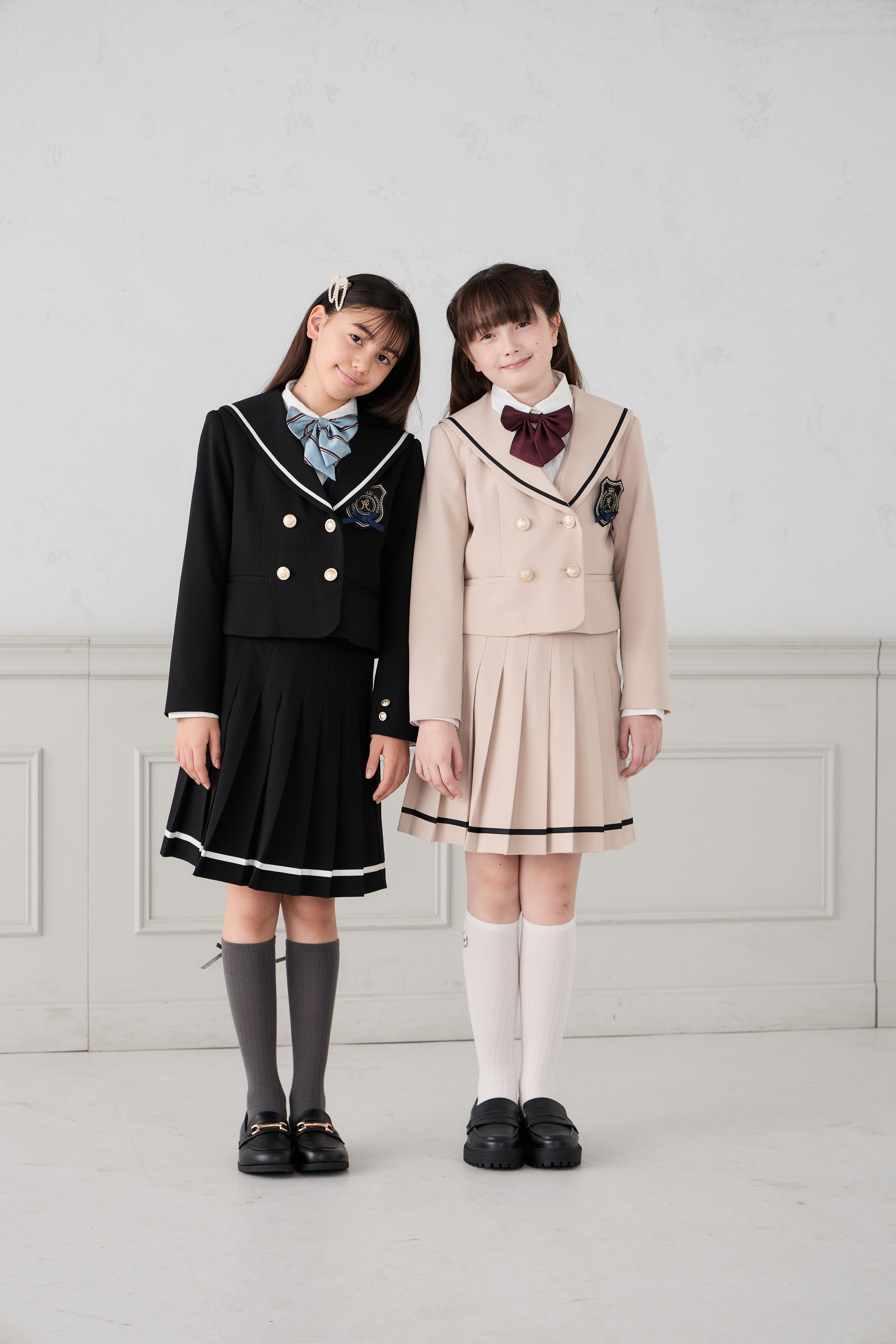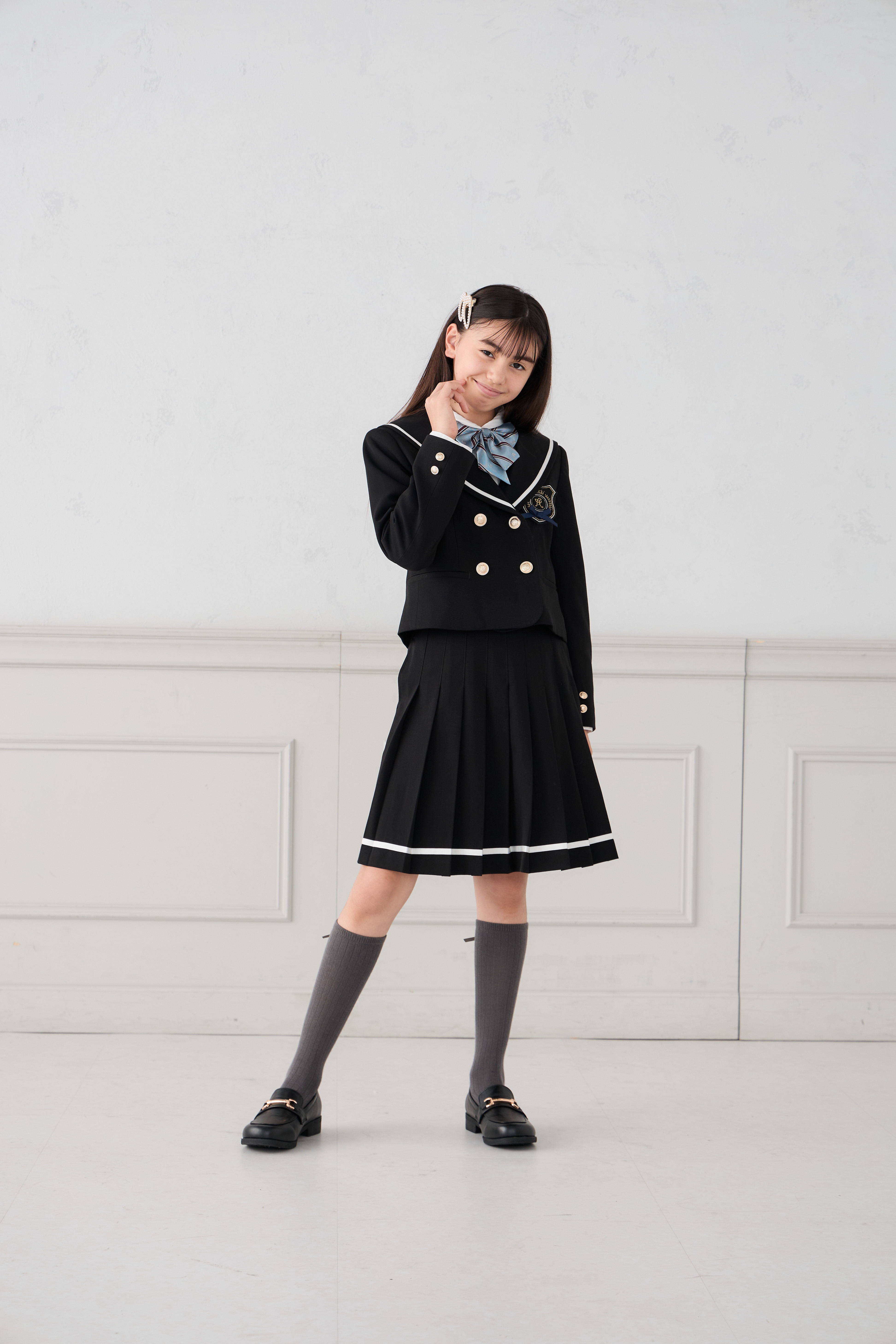 配色ラインとゴールドボタンが上品なアクセントになり、卒業式などのセレモニーにもぴったり!
