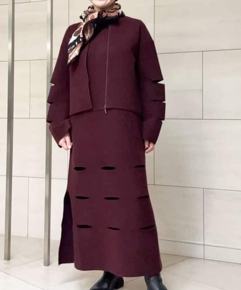同素材のワンピースは、暖かみのある風合いが大人の雰囲気を上品にまとめてくれます。