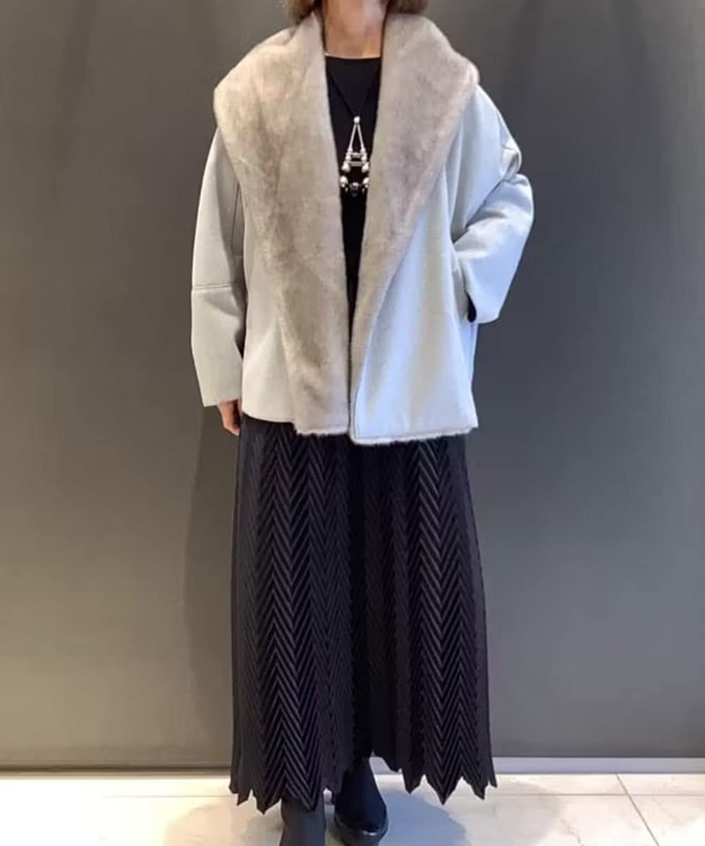 ウールライクな風合いの身頃とふんわりボリューミーなフェイクファーの組み合わせが、上品で大人の雰囲気を演出します。