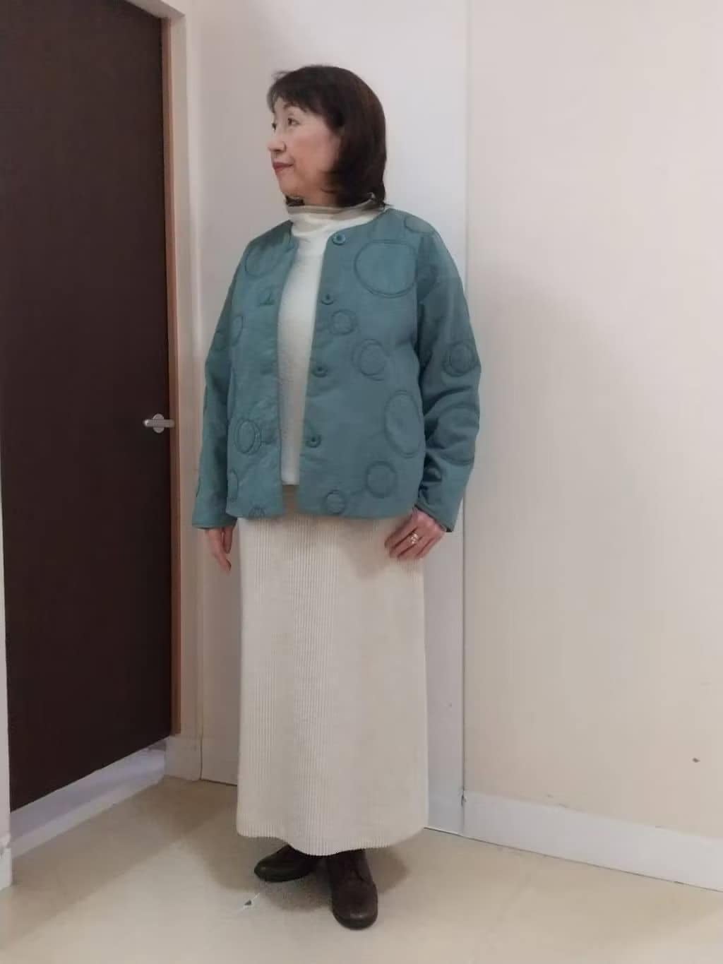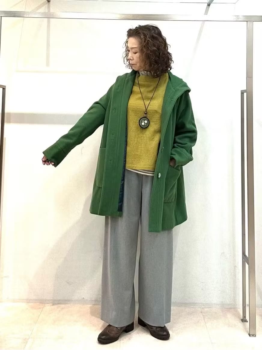 高めの衿とバランスのとれた着丈が、大人のリラックスコーデにぴったりです。