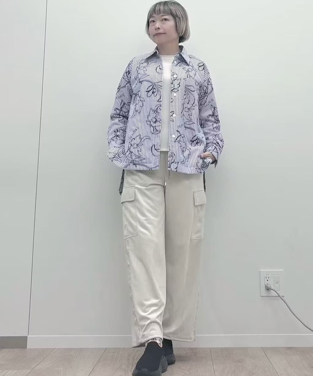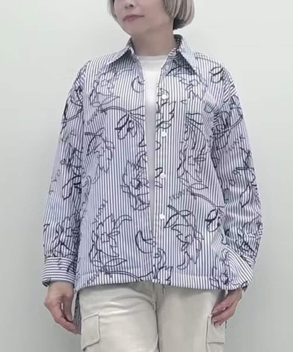 ストライプとコラージュプリントを組み合わせているので、カジュアルになり過ぎずエレガントな一枚です。