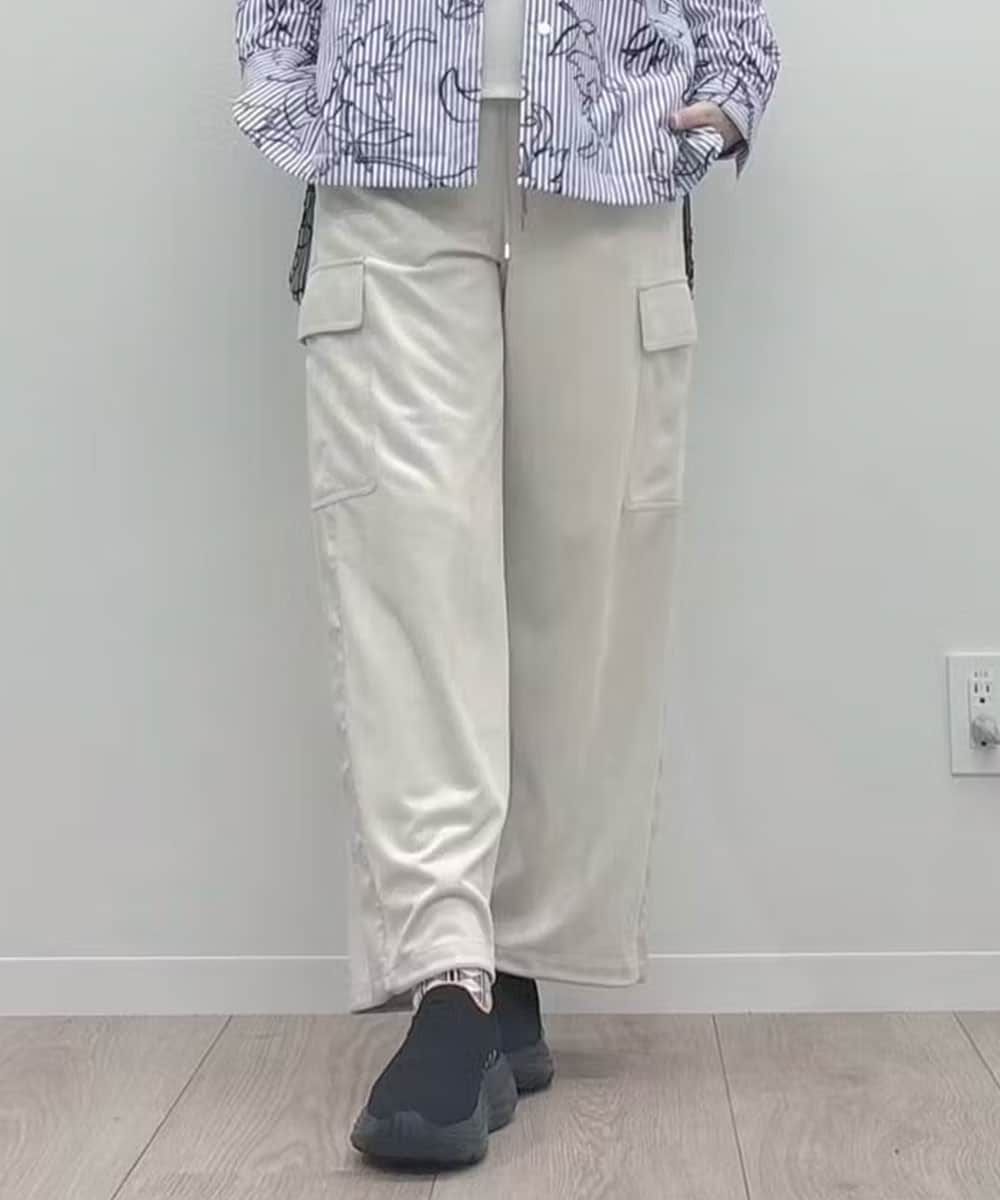 スエード調のパンツで起毛感があるソフトな肌触りです。