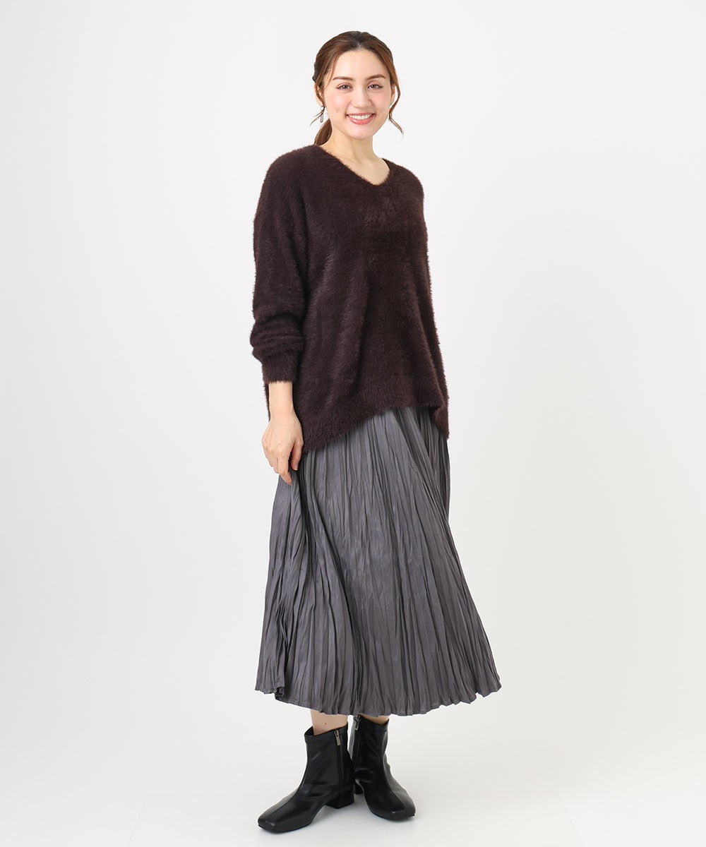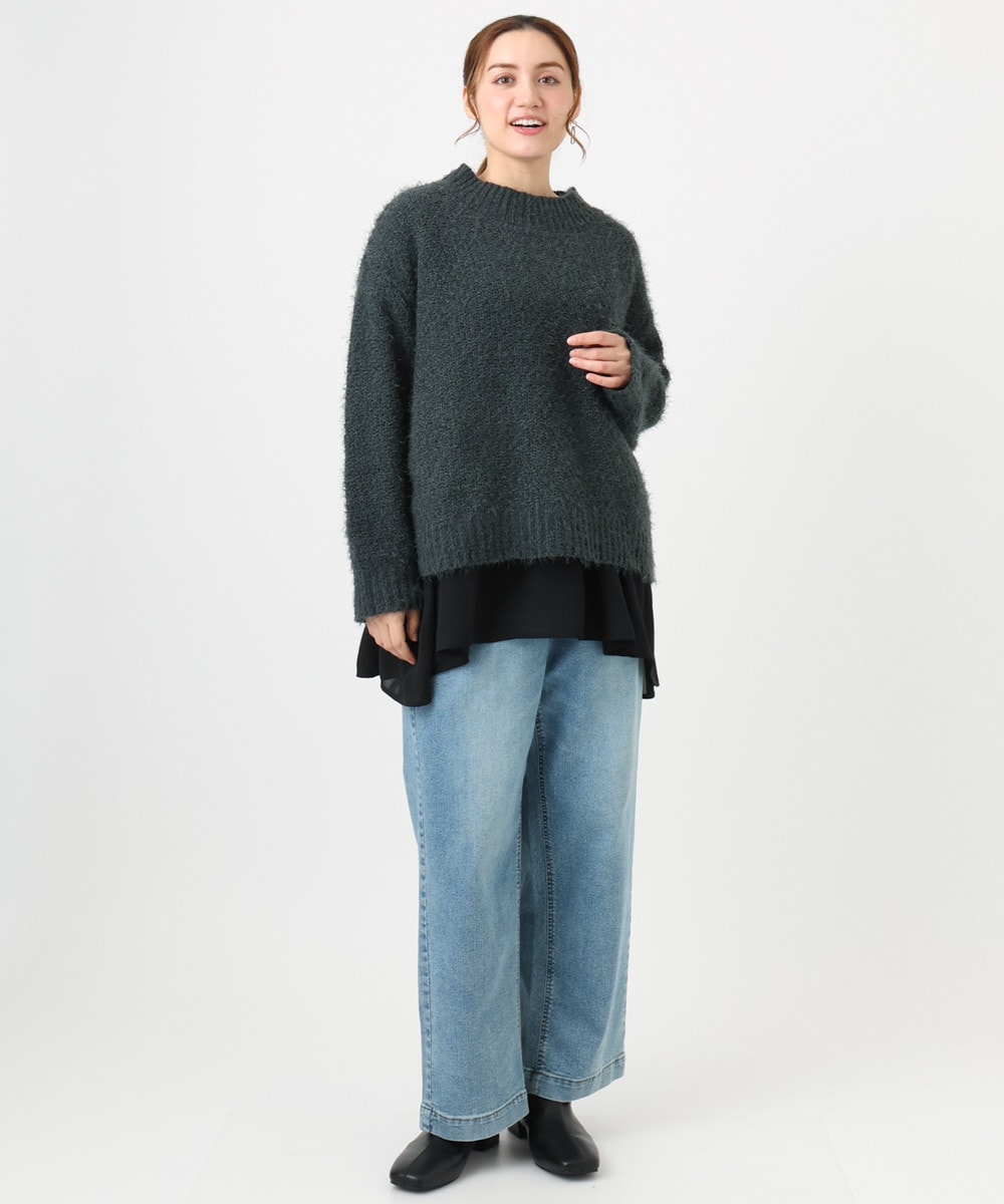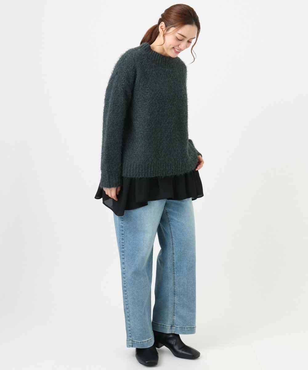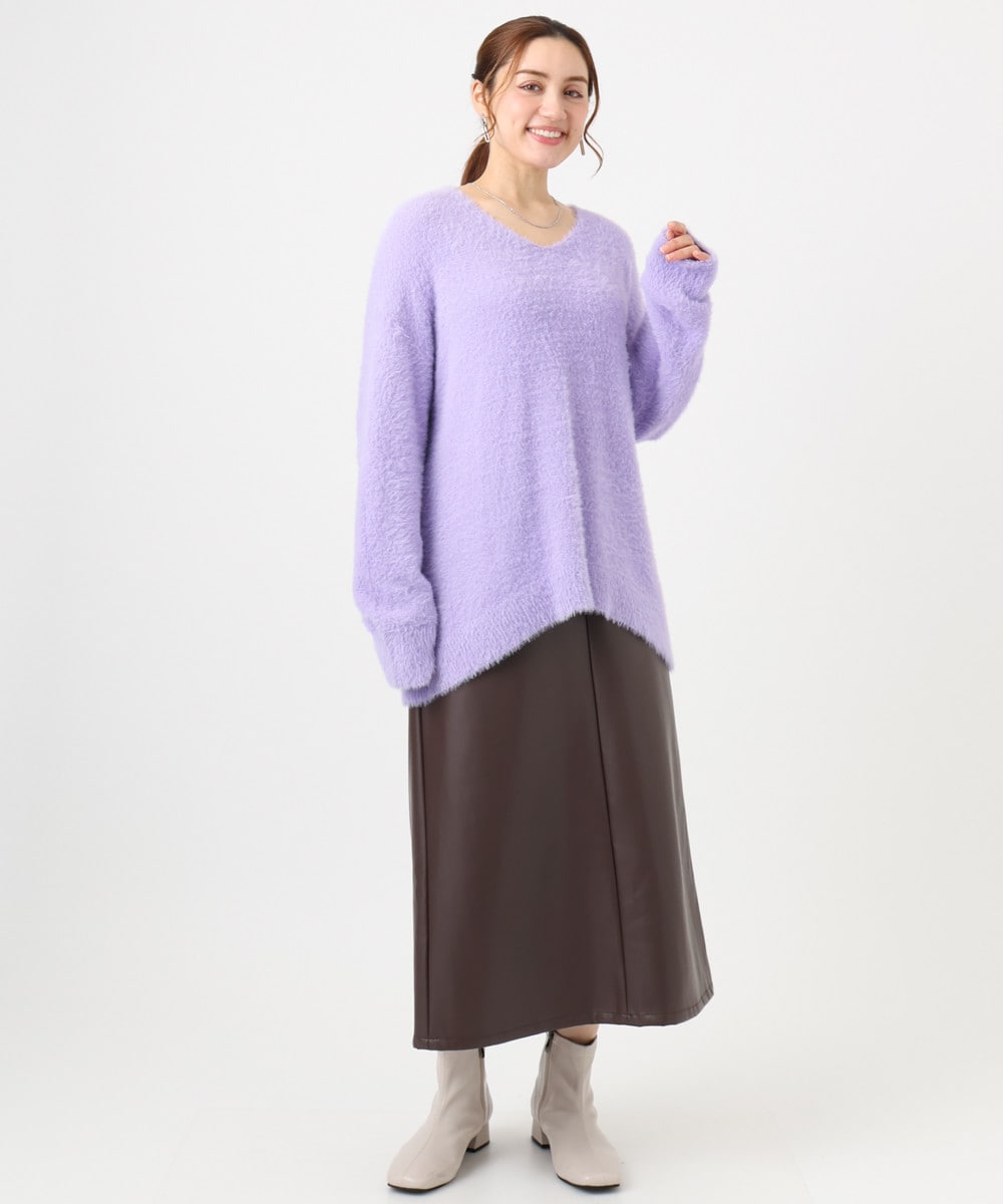 エアリーな女性らしいふわふわニットのリラックススタイル。