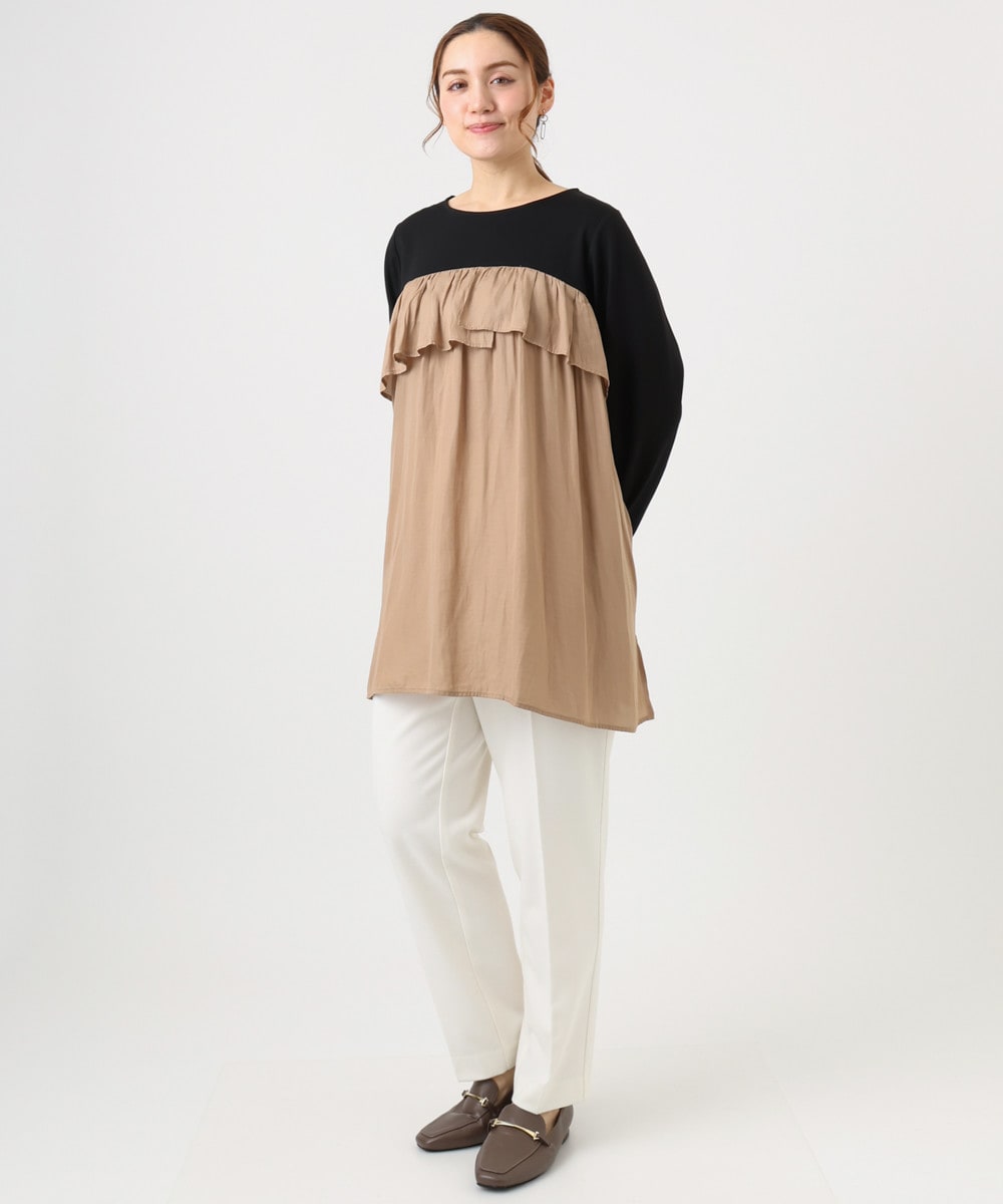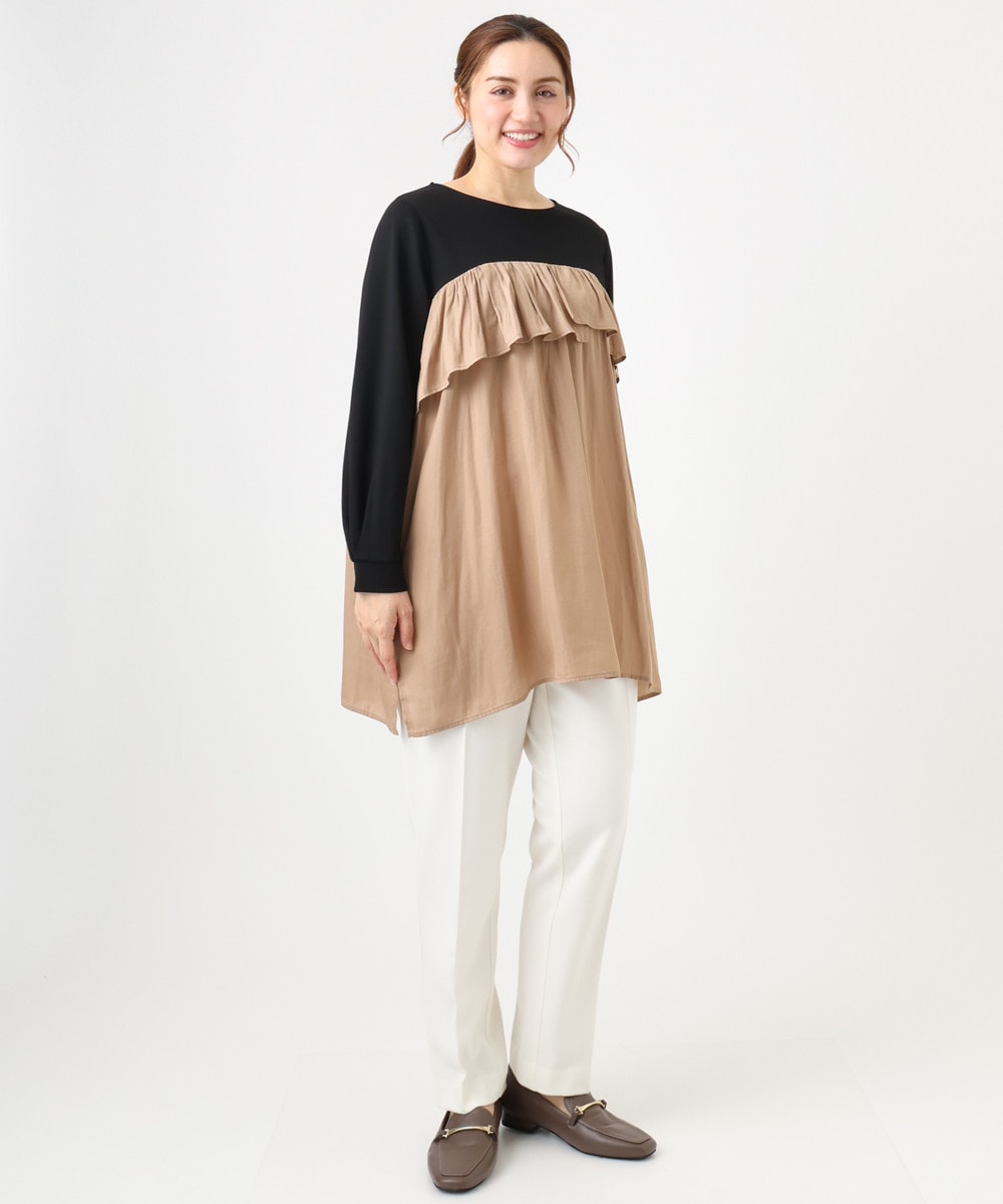 大人かわいいドッキングチュニックはサテン素材で鮮度アップ。