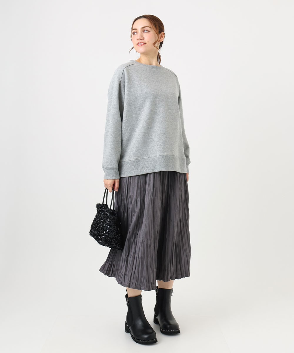 シンプルになりがちなスウェットはワントーンでまとめて大人っぽく。