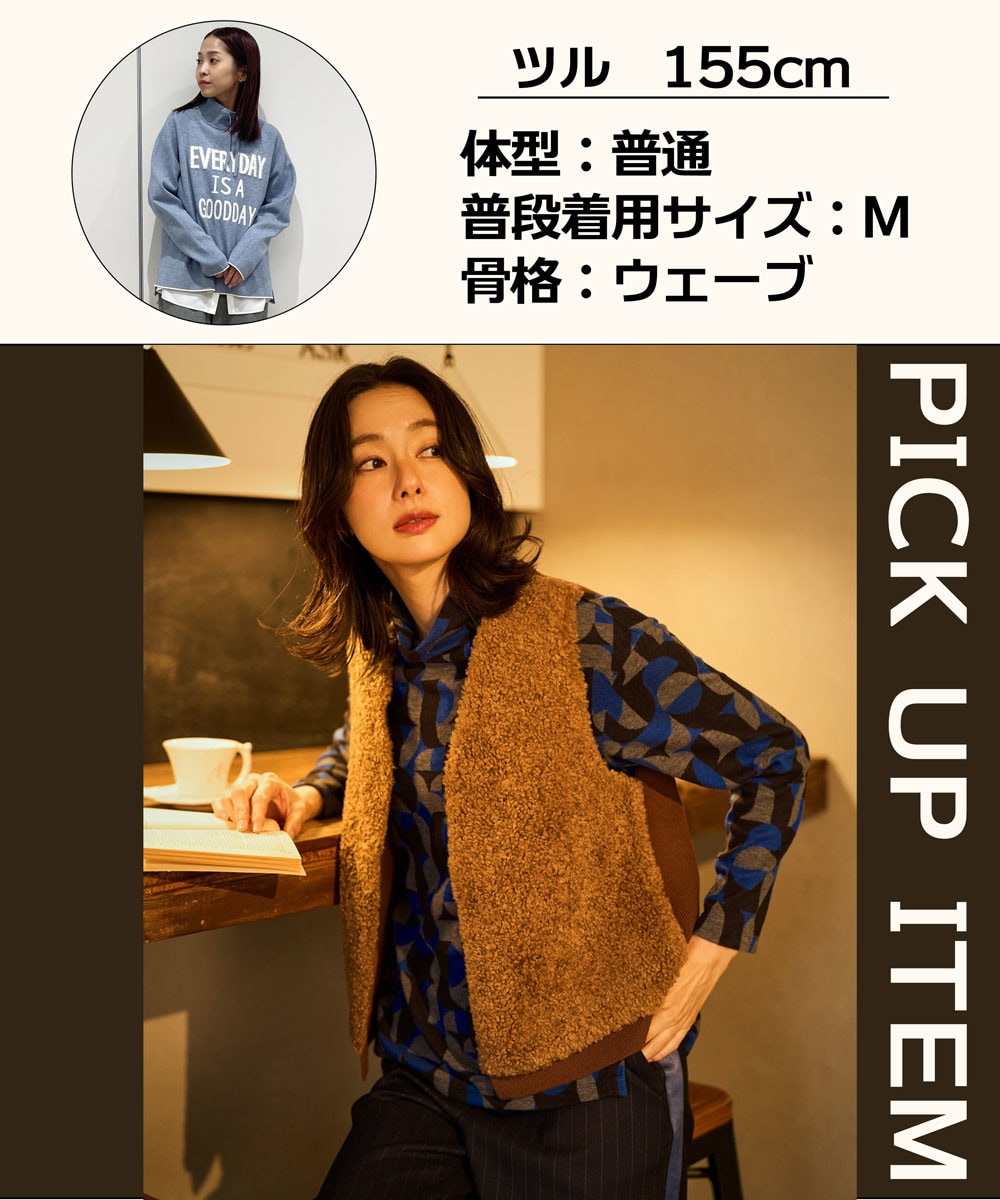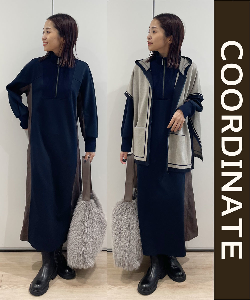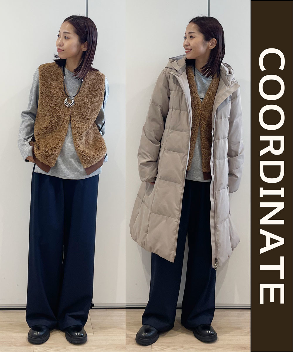 ・発熱と保温性のある生地感なので、非ウールのアイテムでも冬を温かく過ごせる一枚です。