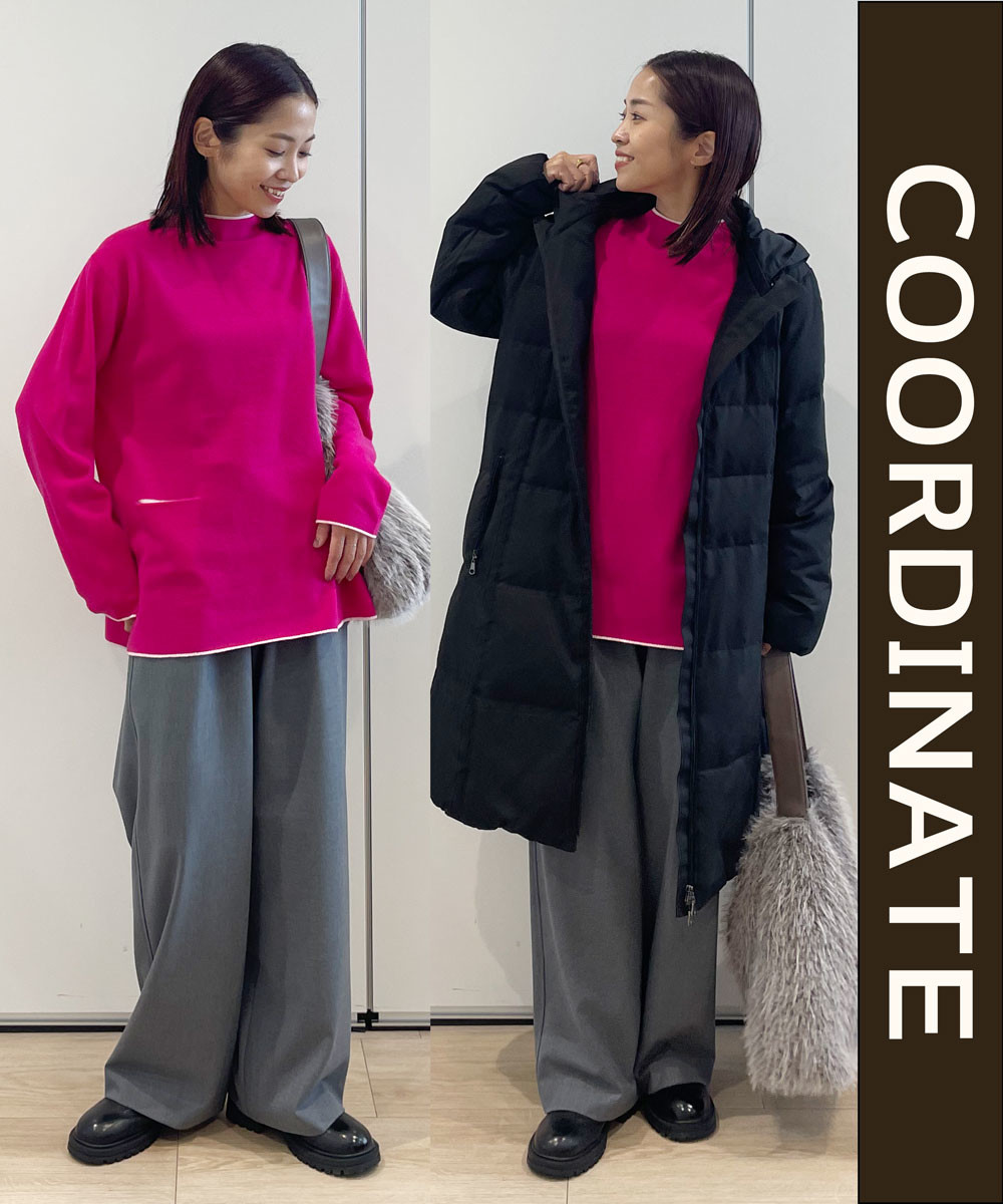 ・発色の良いピンクカラーは、アウターなどを羽織った時のアクセント使いにおすすめです。