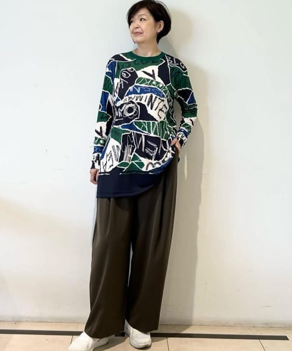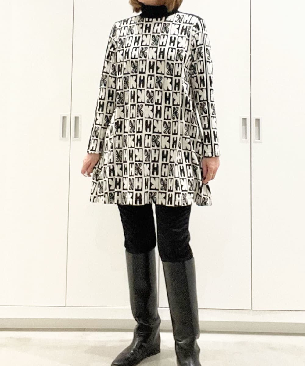 HKフラワーロゴジャカードニットチュニック/日本製