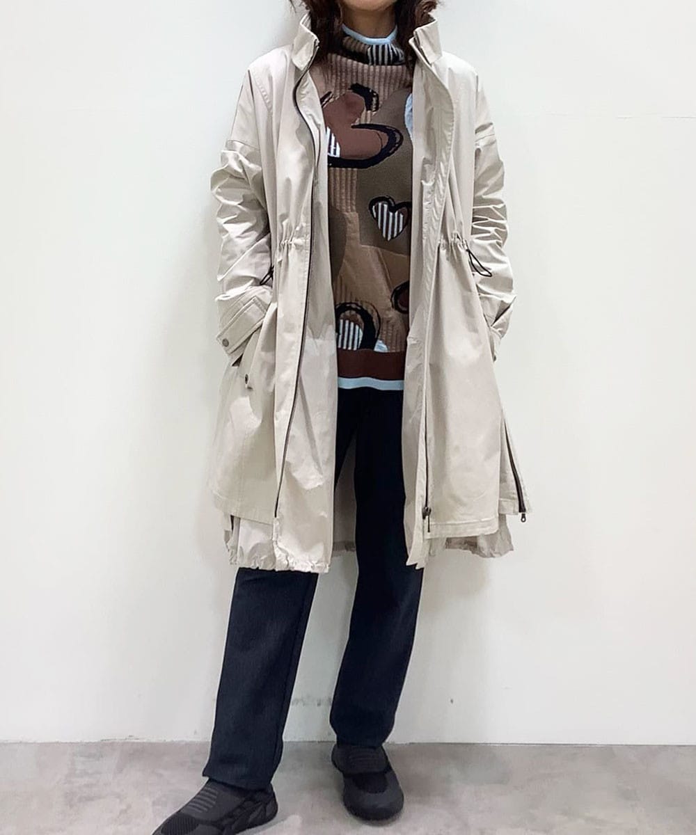 レイヤード風タフタコートは、重ね着風のディティールに凝ったコート。
