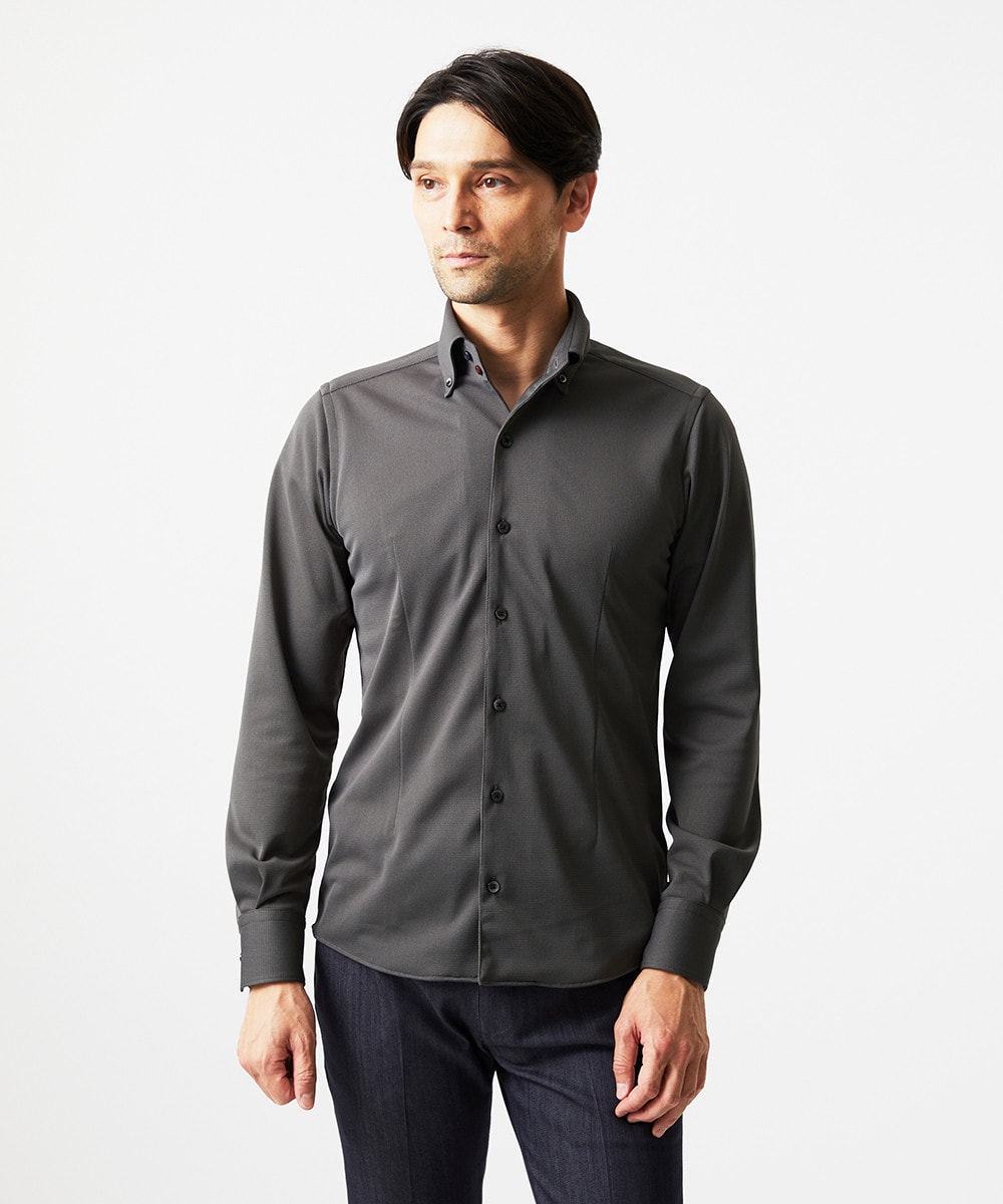 安心の抗菌防臭機能と吸水速乾性を備えた高機能素材を使用した、無地のボタンダウンシャツです。