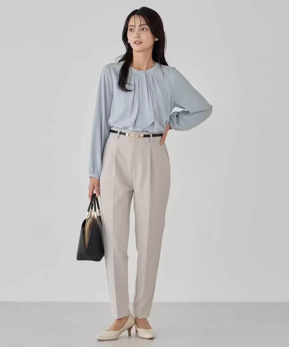 動きやすいストレッチ素材でウエストも脇から後ウエストはゴムで見た目はすっきりきれいめながらも穿き心地抜群なテーパードシルエットパンツ。動く前カンで仕様なのも嬉しいこだわりポイントです。明るめなライトグレージュも透け感の心配なく穿ける上質素材で春にぜひ取り入れたいカラーです。